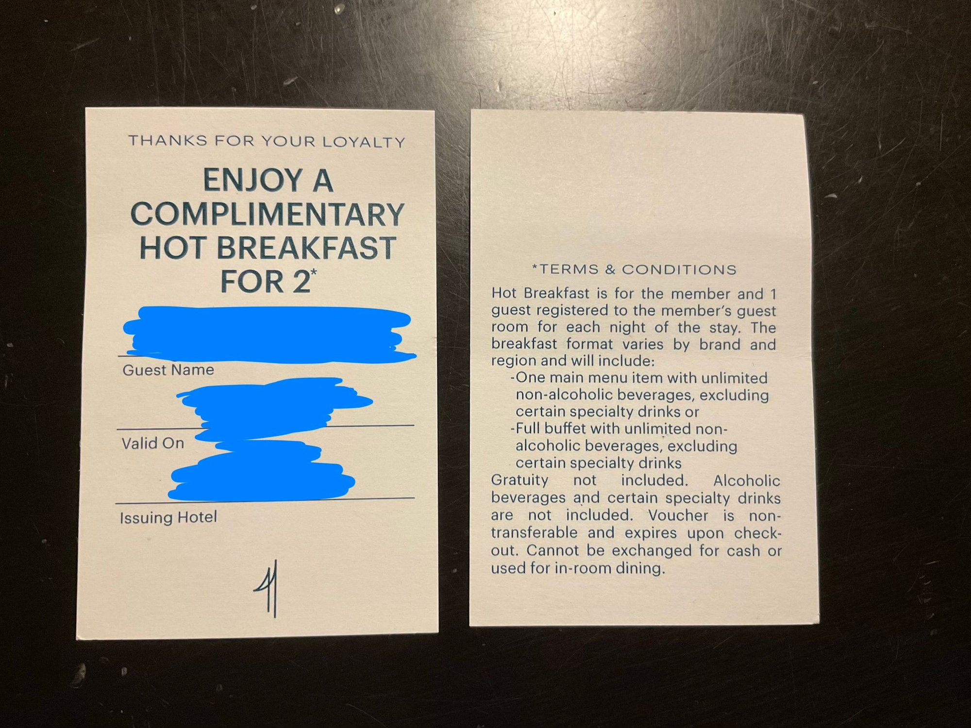 If you chose as diamond welcome amenity: breakfast, you will receive a voucher for each stated night.