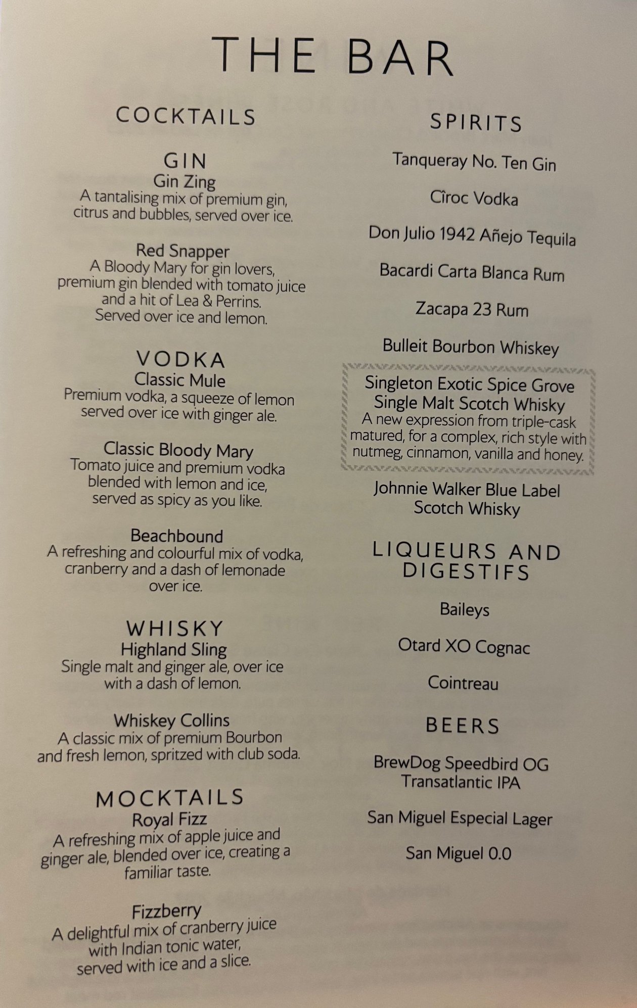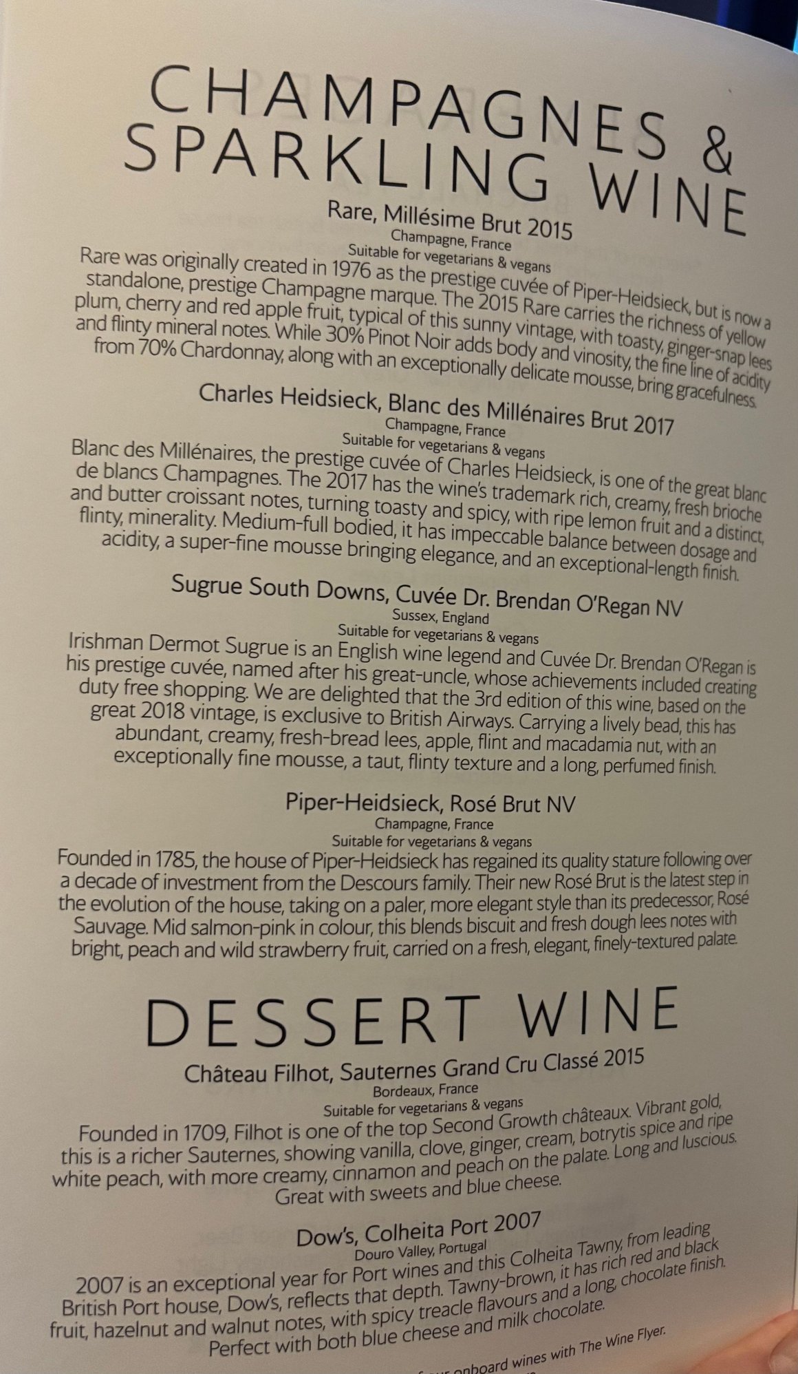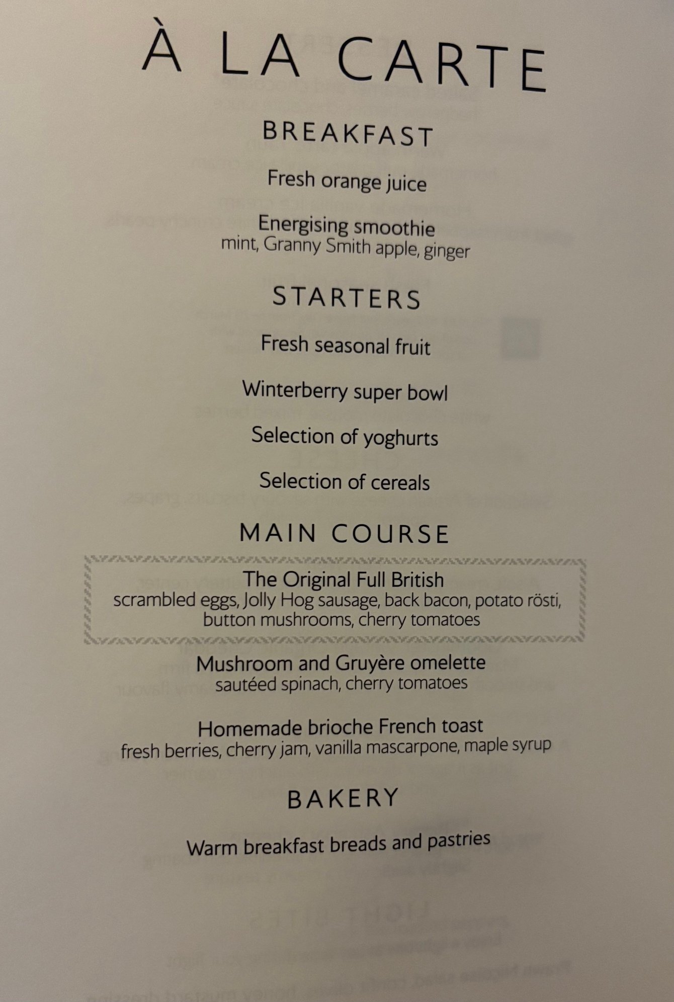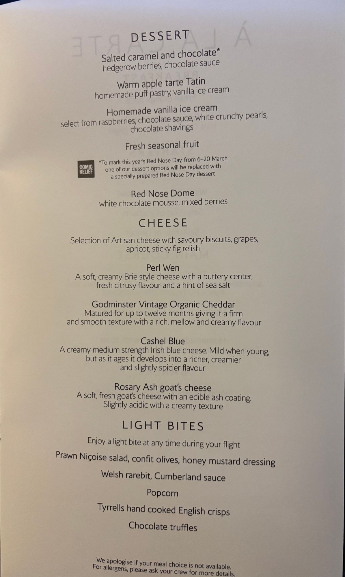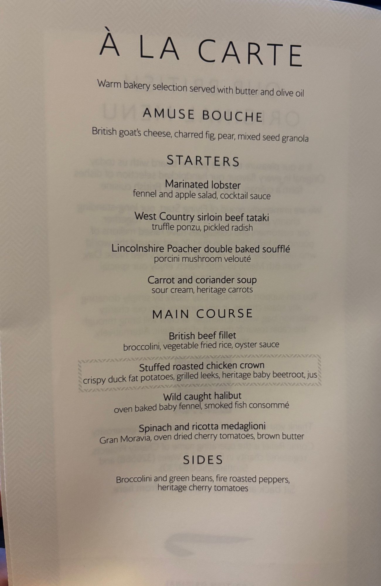 LHR - SIN (BA15) menu tonight (not much change from last month)