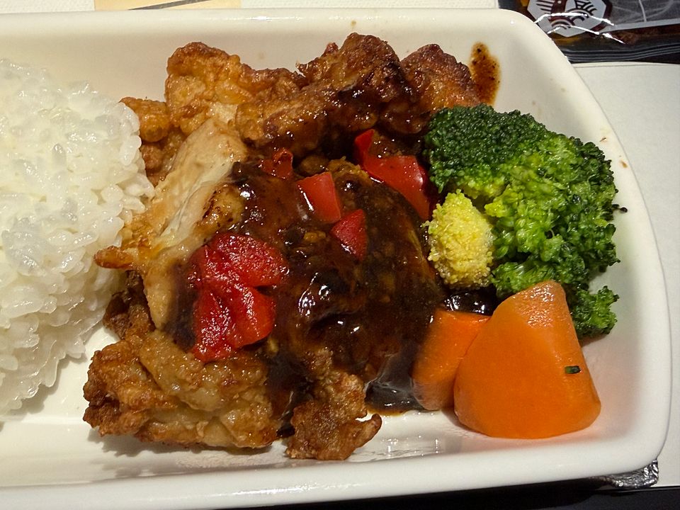 Stir Fried Chicken with Black bean sauce, steamed Jasmine rice & Chinese vegetables