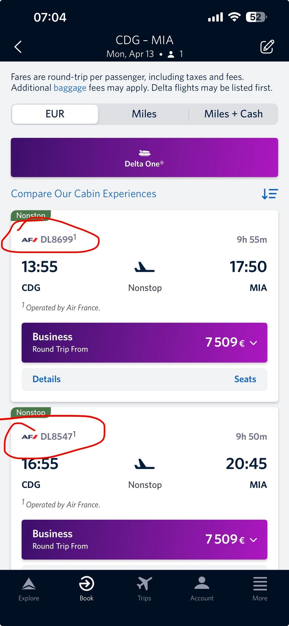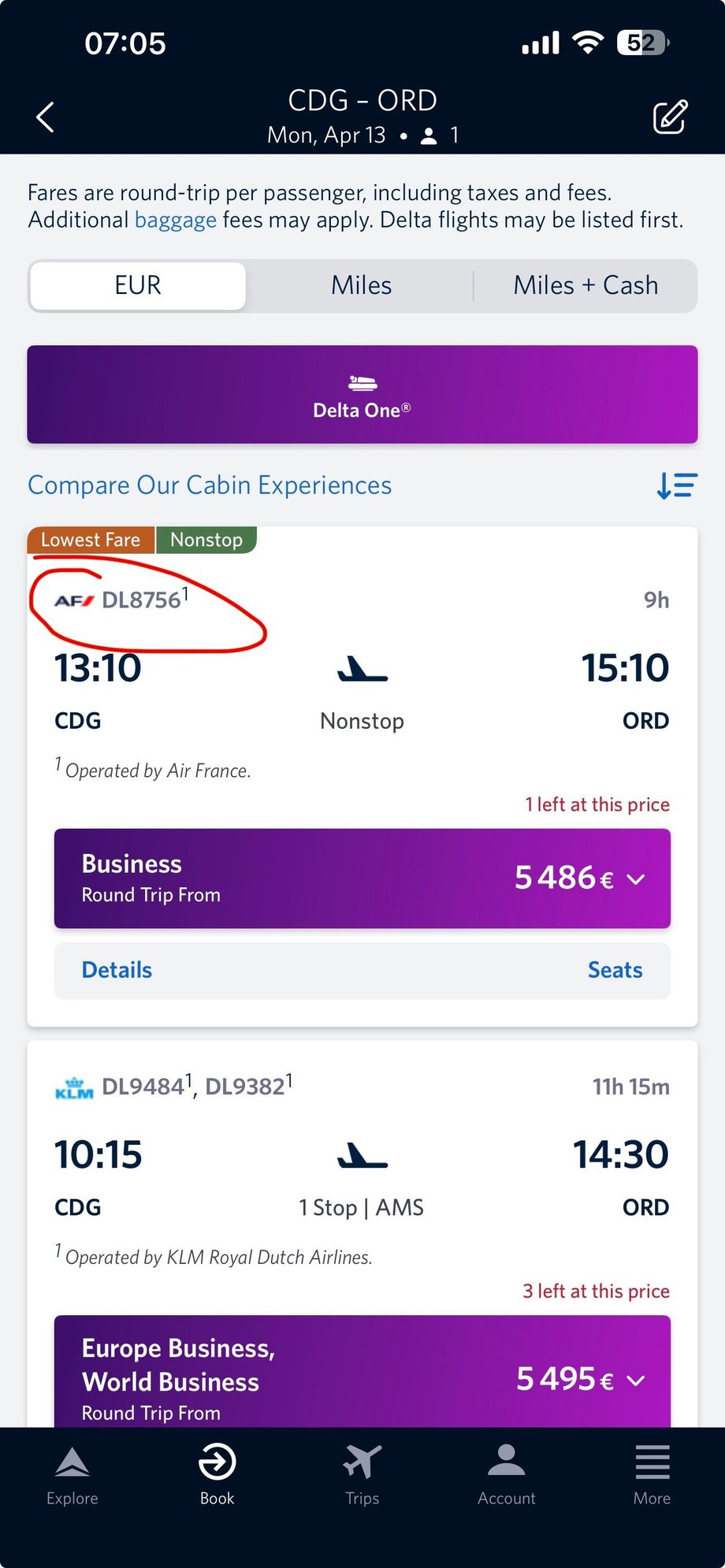 while DL is selling the AFKL non stop US services under DL code exclusively (see screenshots below for examples on CDG-MIA or ORD - dummy bookings in J in April).
