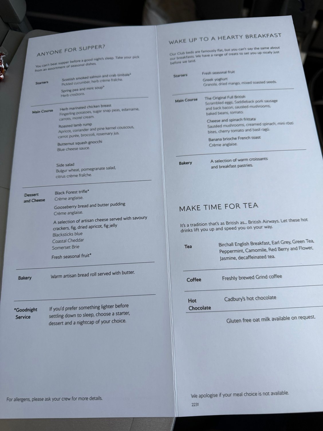 Menu from BA2231. Can’t vouch for what it was like as I didn’t eat anything apart from the breakfast fruit plate and yogurt.