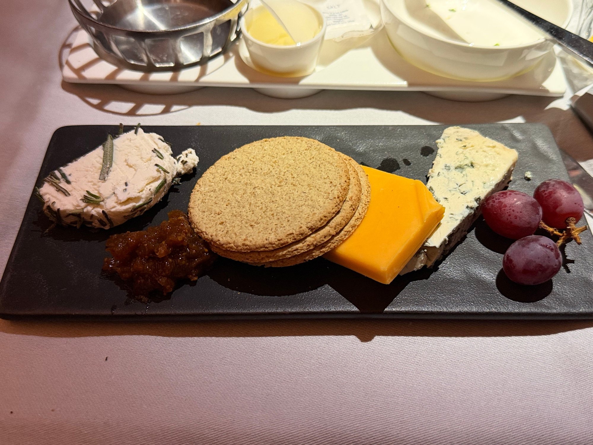 I’m not sure the service norm on BA, but the FA saw my very unfinished plate, took a second look, and said “dessert?” I was wondering if she was going to offer another dish instead. I’m not sure how catering allocation works, but Club World was completely full tonight.