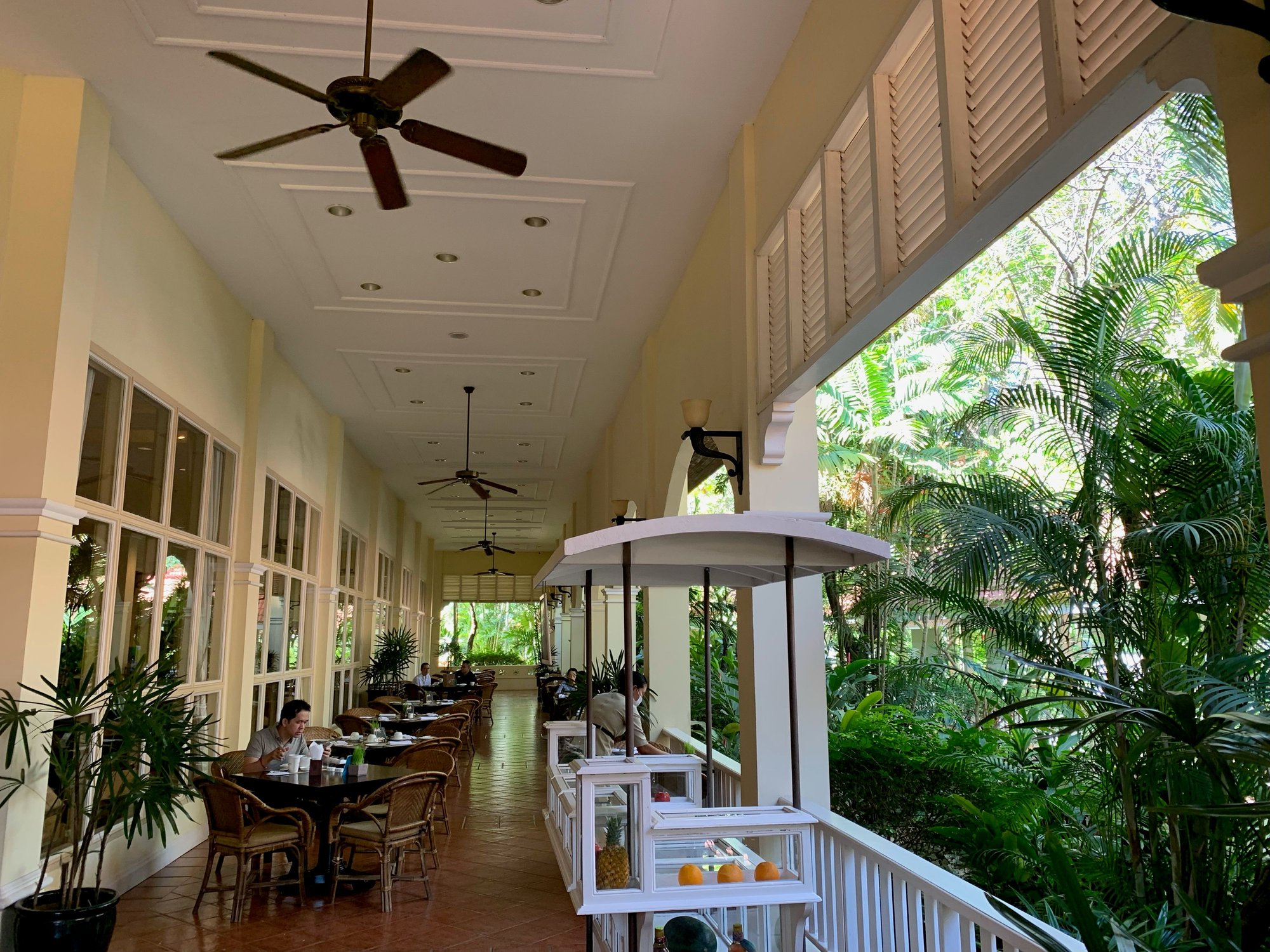 Lobby bar is actually closed for renovation so mahouts doing everything from club to bar to fine dining. So that means I am just parked at my club sofa overlooking tha pond all night. Club letter says breakfast is available there, but not the case. main dining room had people in there last night.