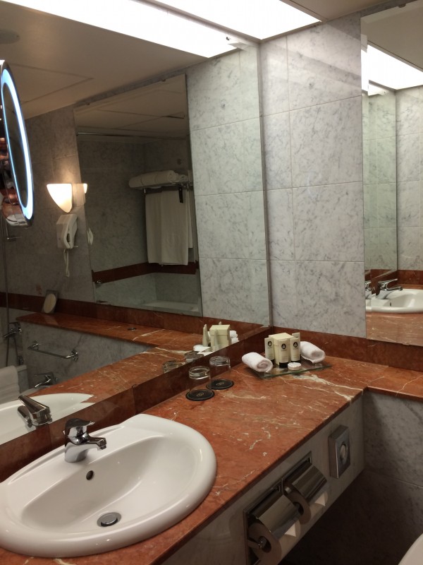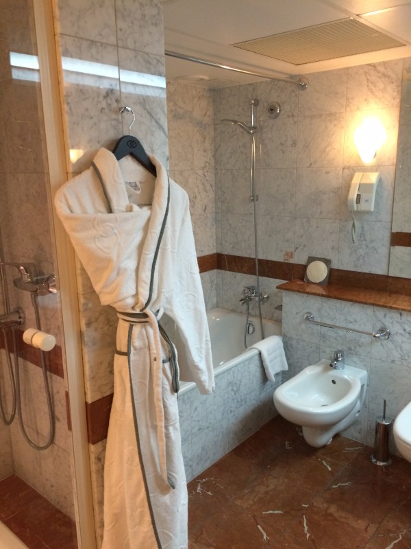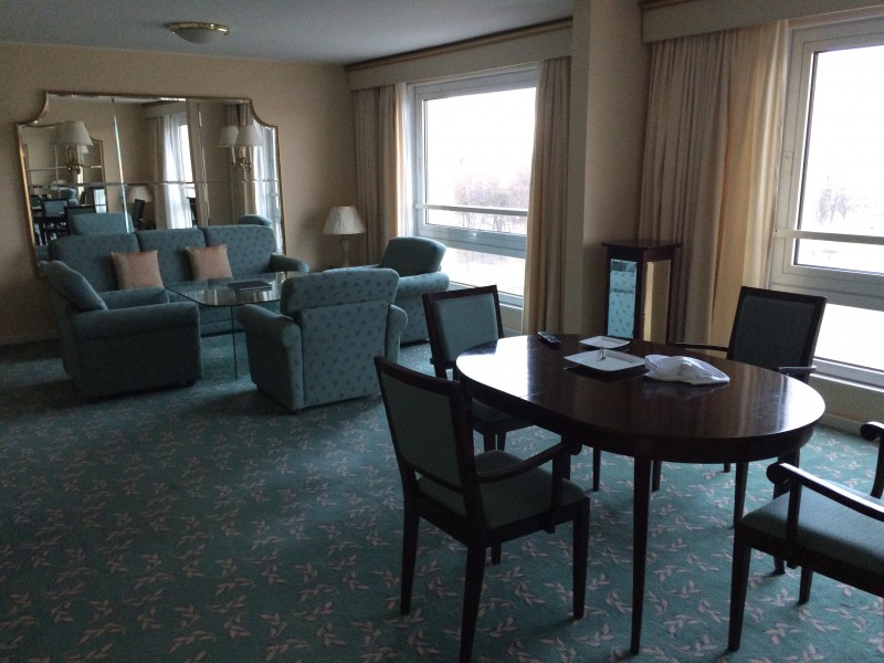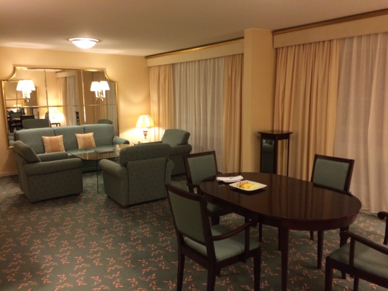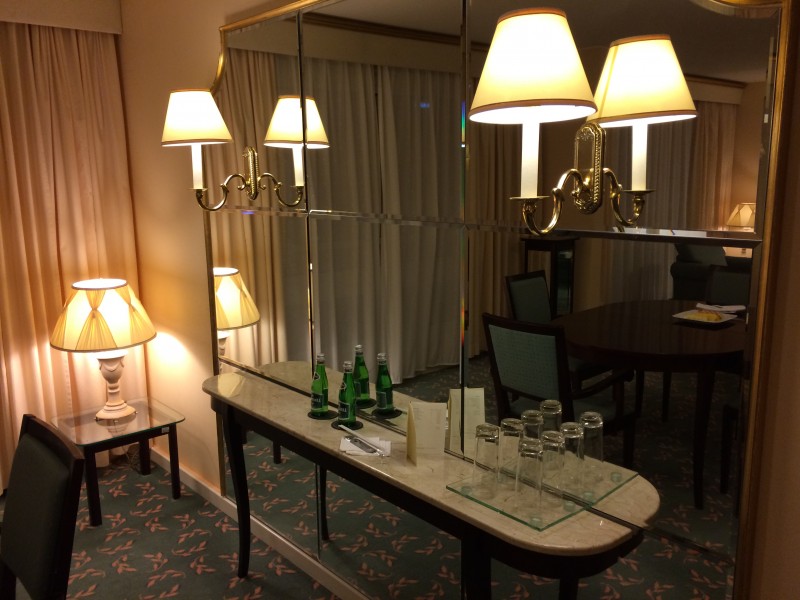 The Prestige suite was nice (55 m2). The furnitures are a bit dated for their style but still in good condition. It is important to mention that the hotel has started a complete refurbishment of their rooms and it looks nice. But the suites are apparently not yet done. The view was lovely on the main square on which the hotel is located. You can see below pictures of the Prestige suite.