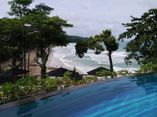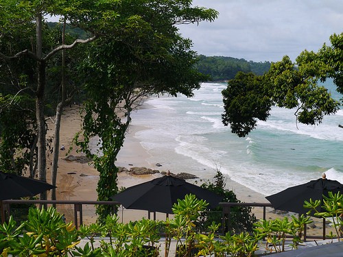 The beach : easily accesible from the pool via a flight of stairs. The hotel has also a shuttle running to different parts of the beach. It is important to note that it is a public beach. The hotel does not have a private area and this is a pity because it is very nice from above but once youre onit is a complete garbage dump. Totally scandalous: hundreds of flip-flop shoes, lighters, cans , plastic and glass bottles, papers, etc. Furthermore, do not expect to swim there. Its a very dangerous beach with big waves and very strong currentsa heaven for surfers but not for regular beach clients.