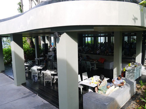 - the main one where they serve breakfast buffet and where you can have la carte dinner + Thai buffet on some evening. The la carte food was better than the buffet because, as often with buffet, the warm food is in fact cold and dry. Also, this Thabuffet evening, the restaurant was archi full and the service was completely disorganized with staff running around, taking forever to take your order, making mistakes with drinks and other ordered meals, not removing dirty plates, etc. When I complained about all this, I was kindly offered a glass of wine.