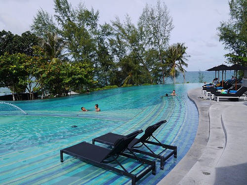 There are 2 pools. The main one, under the lobby, overlooking the beach and at the same level as the pool bar and main restaurant :