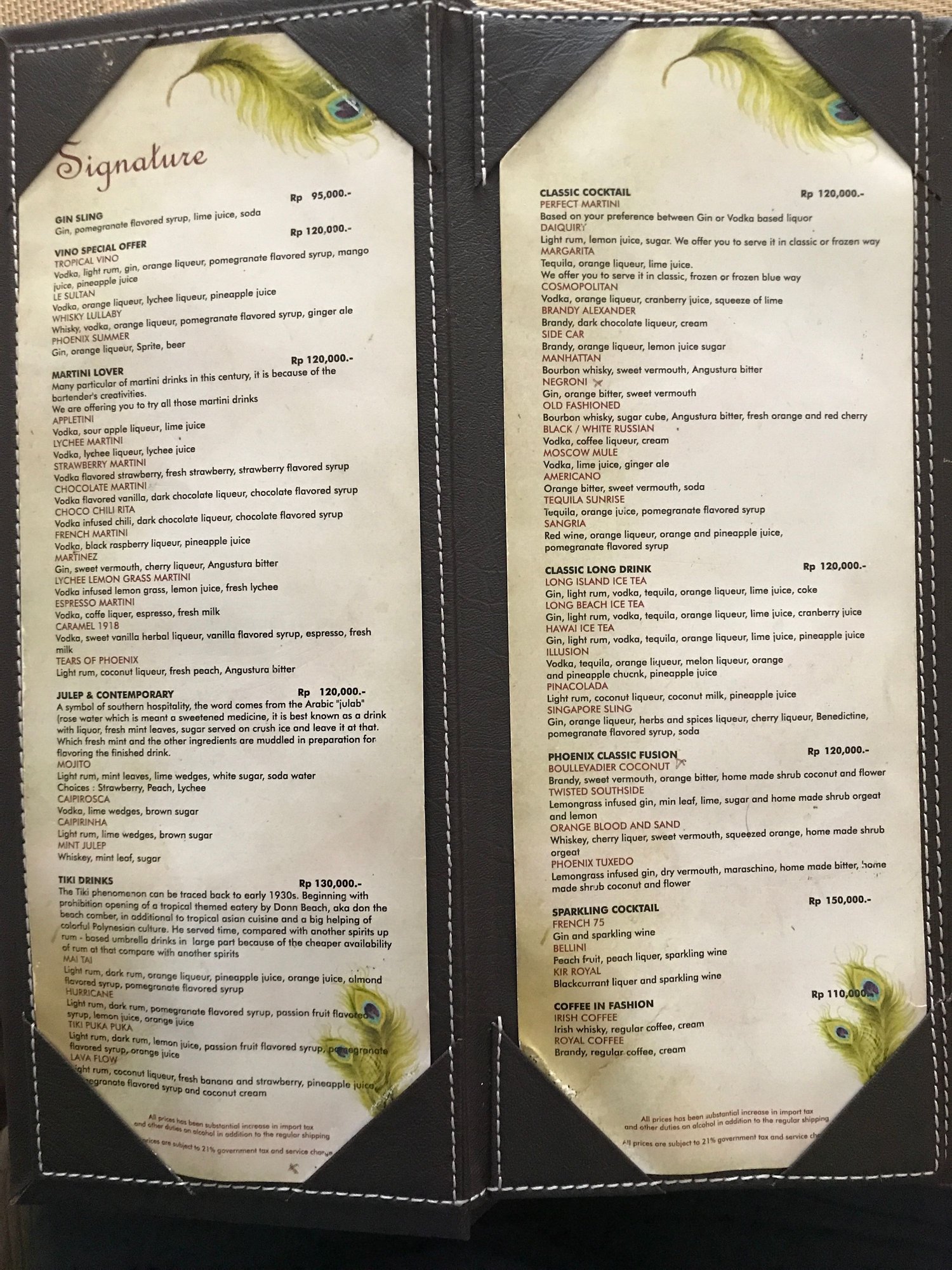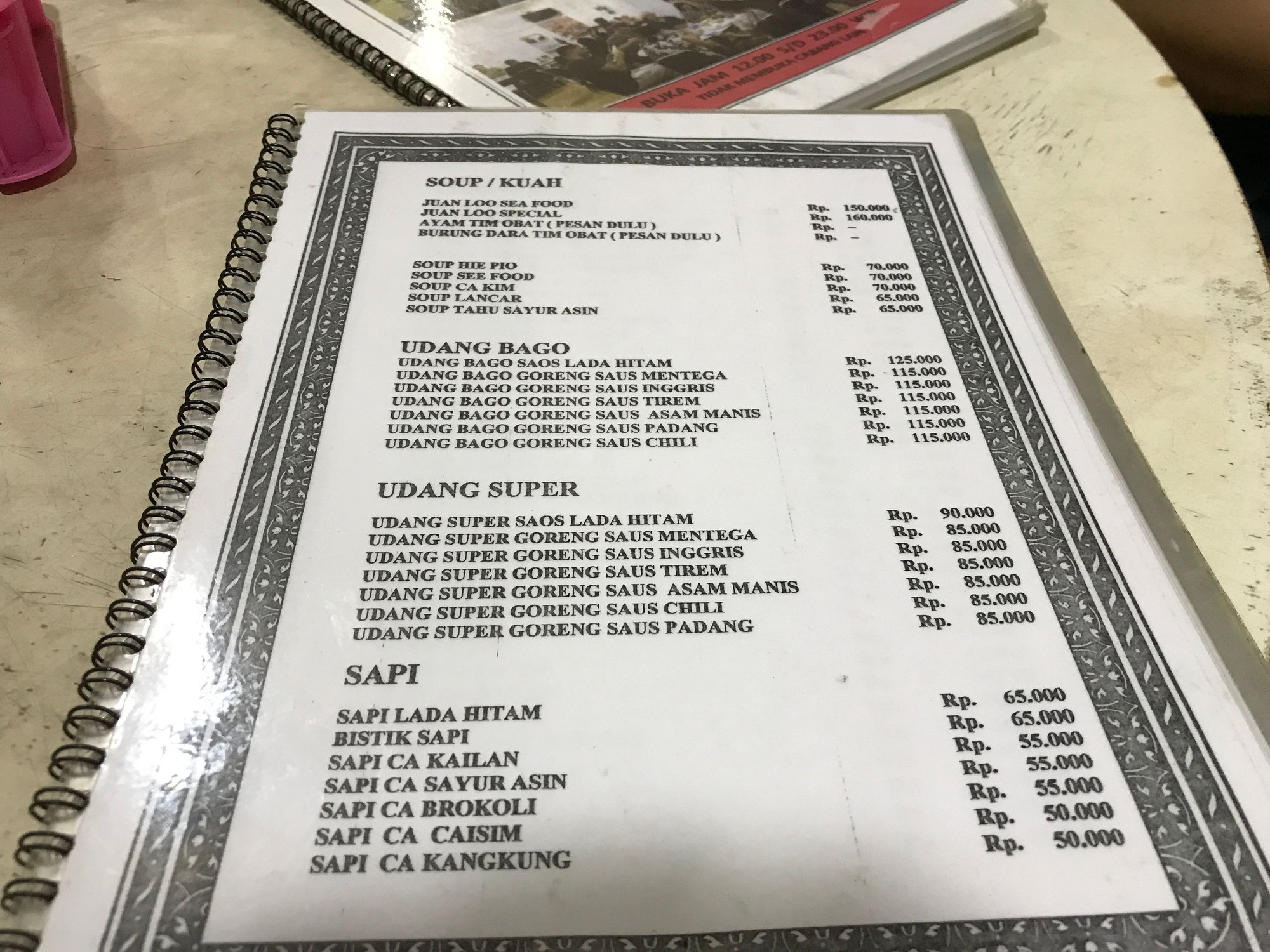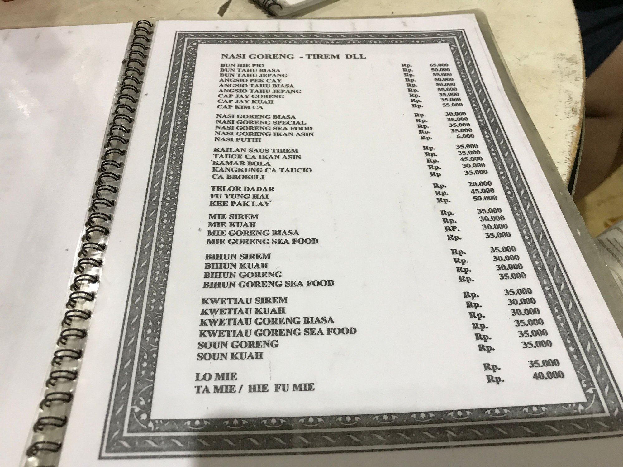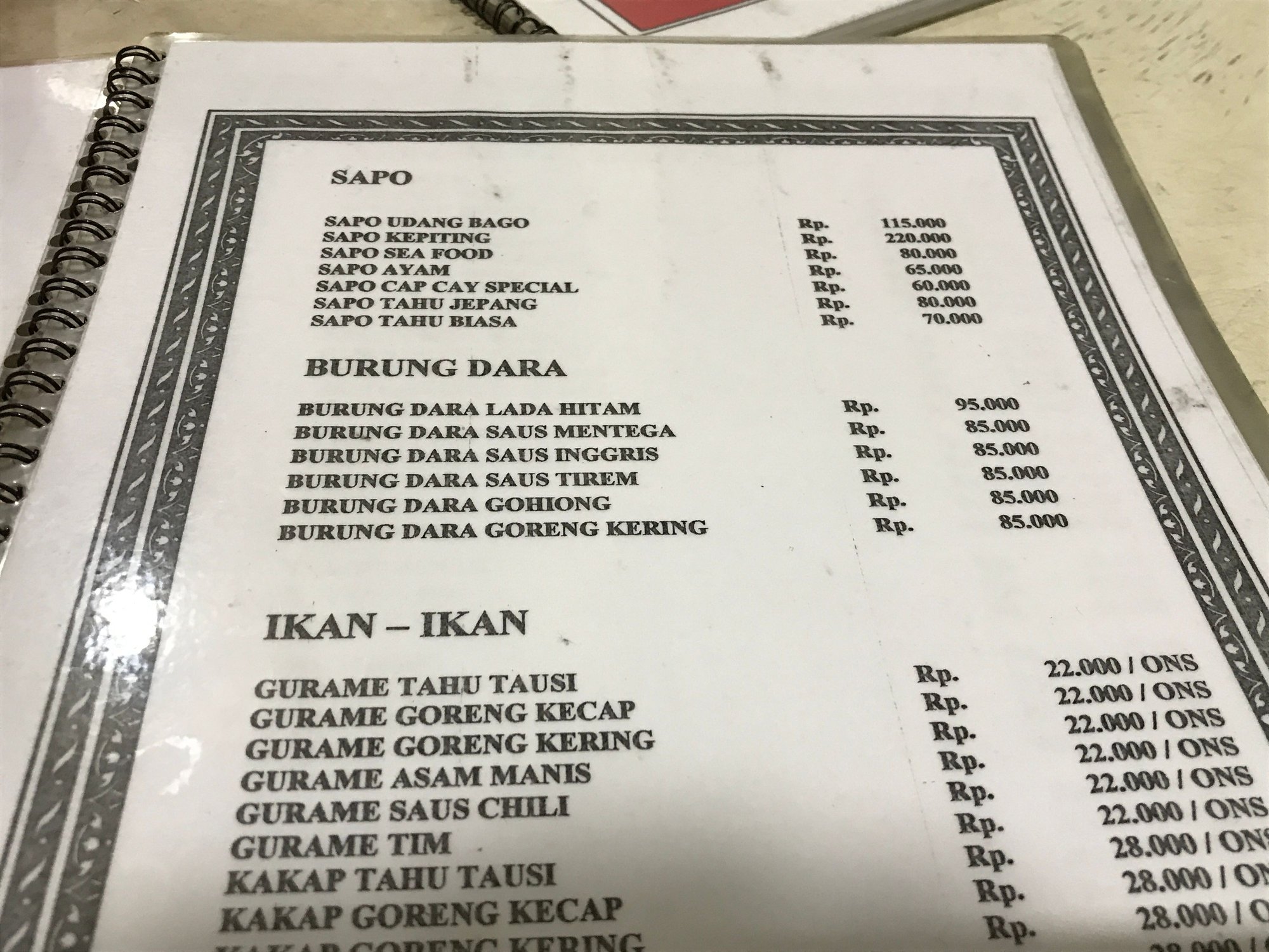 Restaurant menu