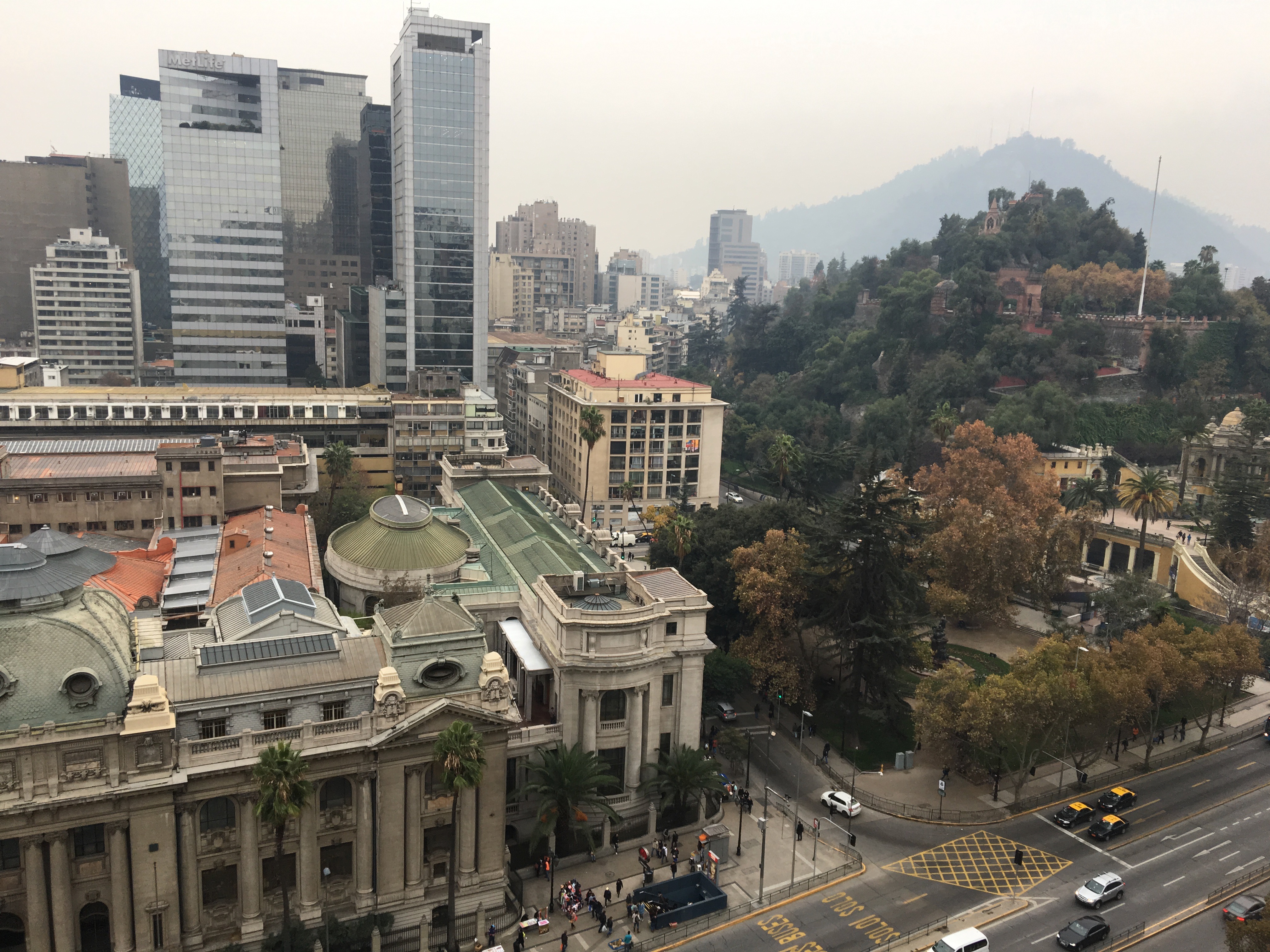 It is very centrally located, as its name tells, on Av Libertador General Bernardo O’Higgins, across the street from the national library (Biblioteca National) and the Santa Lucia hill. The Santa Lucia metro station is at the foot of the hotel. From this metro station, you can reach directly the 2 main bus stations.