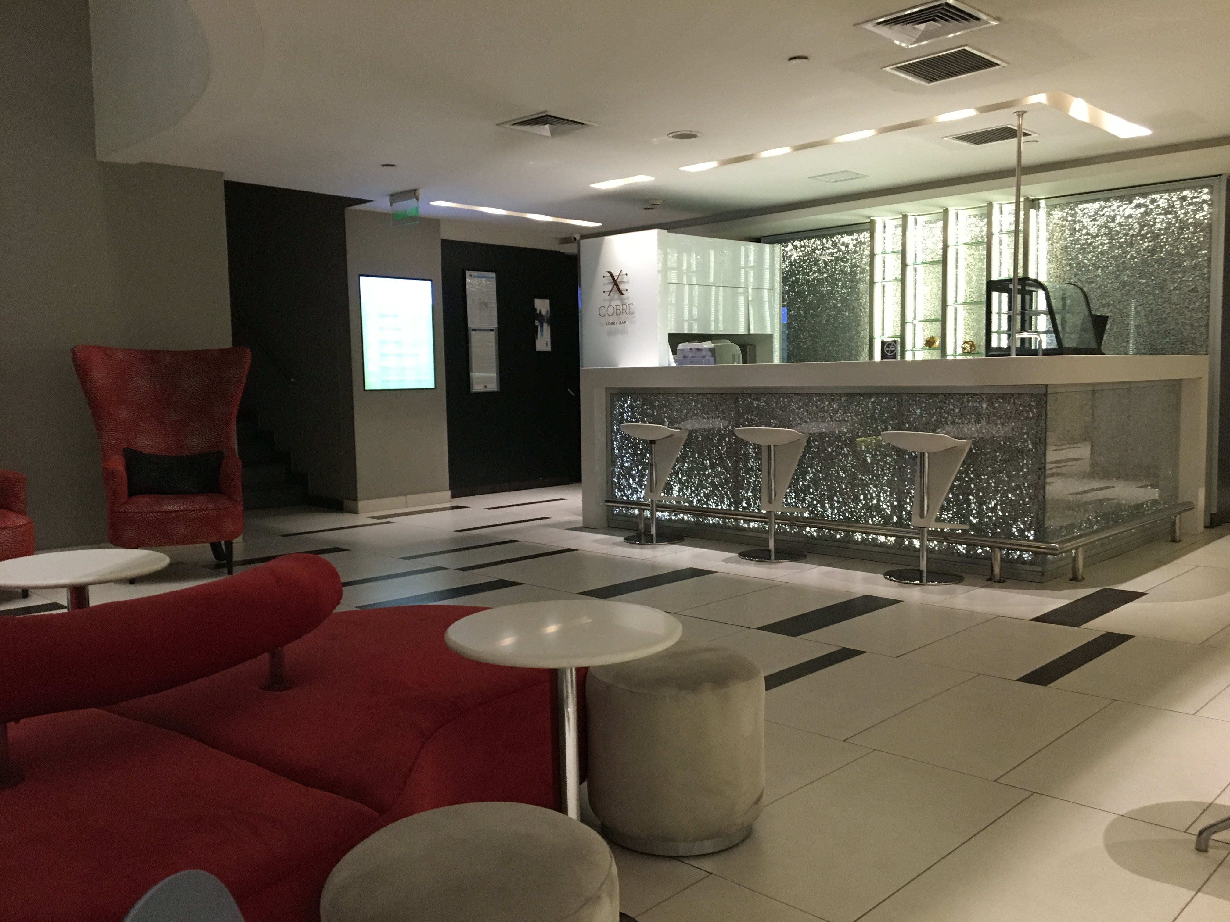 There is a kind of bar in the reception area, where you can use your drink voucher. You can even have food served here if you want. I have to say, I don’t feel in a bar in that environment, but that’s OK (I mean you feel like having a drink in the middle of the ballet of people going in/out of the hotel, so not a typical bar ambiance at all). With the drink voucher, you can have the usual suspects for that kind of brand, including the superb Chilean wines.