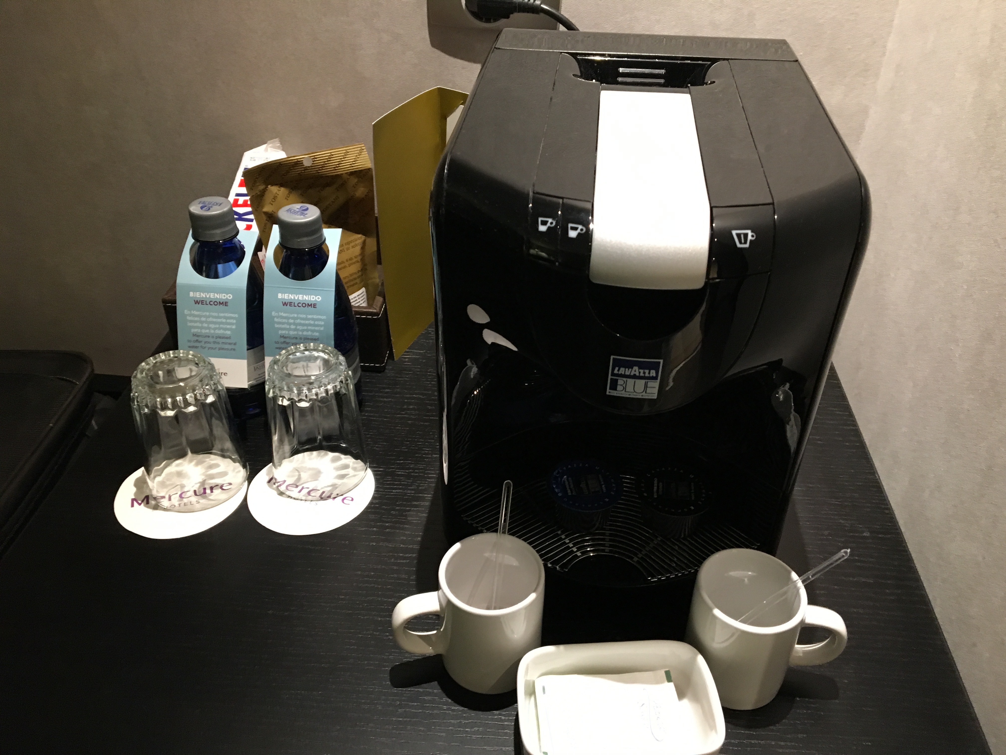 Bathrobes were in the closet but no slippers. Espresso machine, water and welcome chocolates + welcome letter signed by the GM (and mentioning the upgrade).