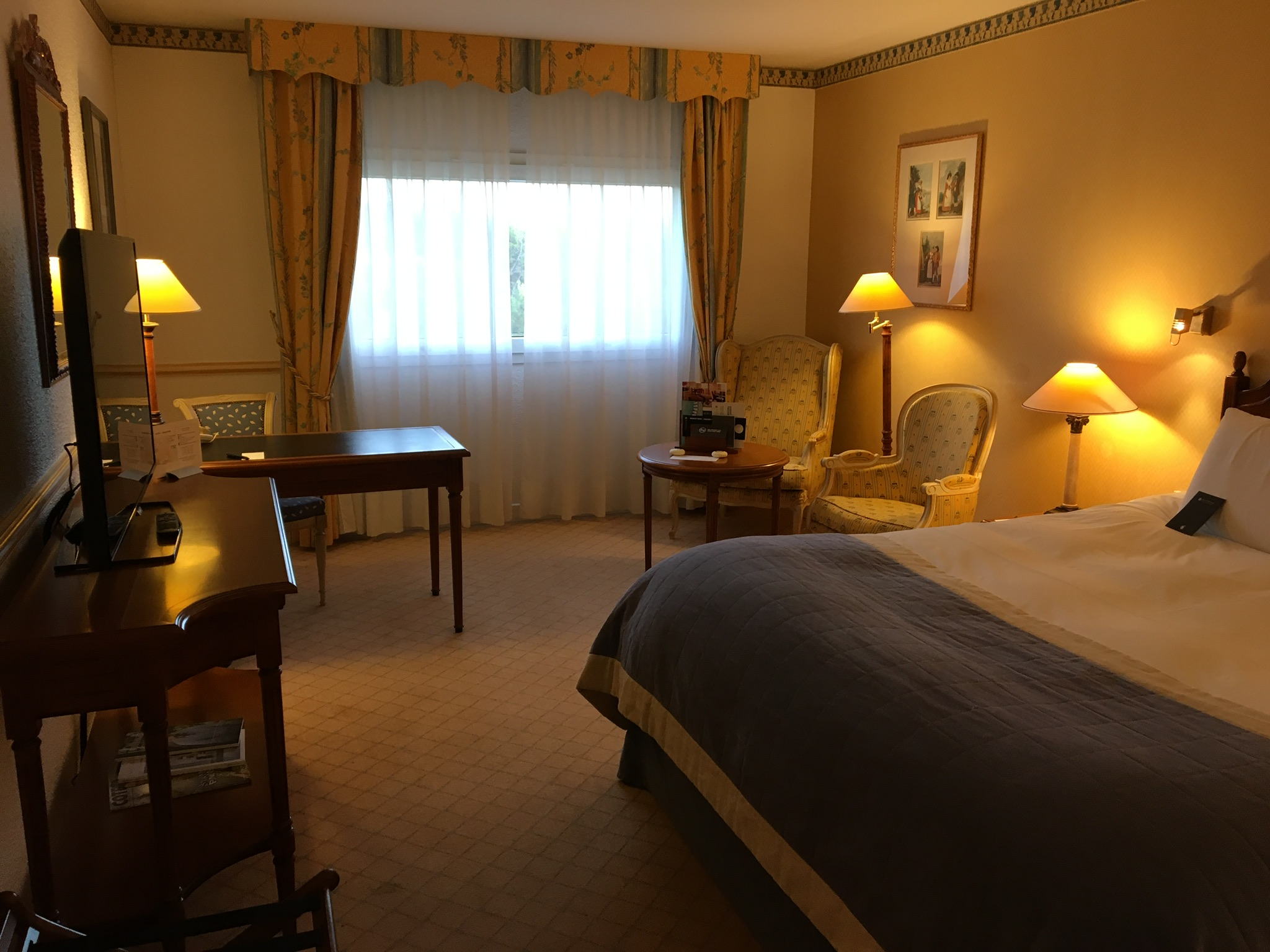 The room was quite dated in style, but in good conditions. There is quite a contrast between the modern decoration of the lobby, corridors, restaurants and the "old style" of the rooms. Apparently (from the website), the higher room categories are more modern in style. So maybe some renovations on-going or coming. But, again, the condition of the room was OK. This room style reminded me the one you had at the ex-Sofitel CDG which was downgraded to Pullman and then further downgraded to a Mercure.