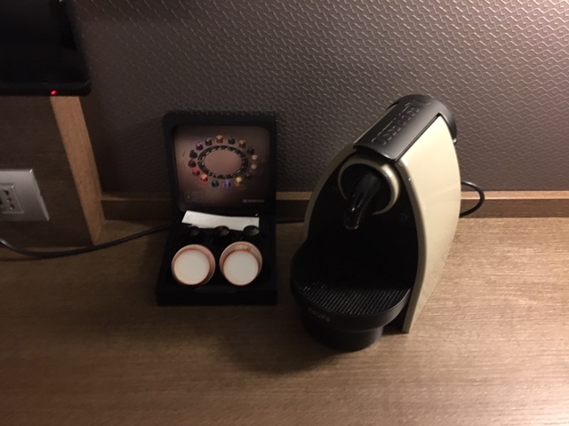 We had booked Privilege rooms which are the highest category so no upgrade was possible. The rooms are large and feature a very large and comfortable bed, a sofa and plenty of desk space. The minibar containing soft drinks and water was free. A Nespresso (with three capsules, replenished daily) and a kettle for tea or instant coffee was also available). Wifi was free (with high speed vouchers also provided).