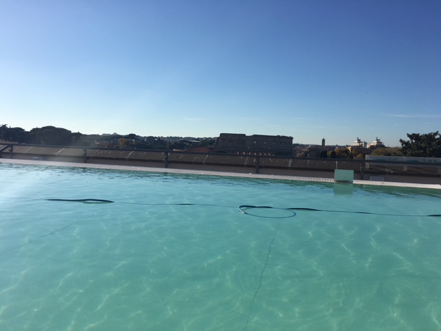 The hotel also has an outdoor swimming pool overlooking the Colosseum and a roof top bar. While the pool and bar were closed for the winter the weather was so nice that we brought our welcome drinks up and enjoyed the sun.