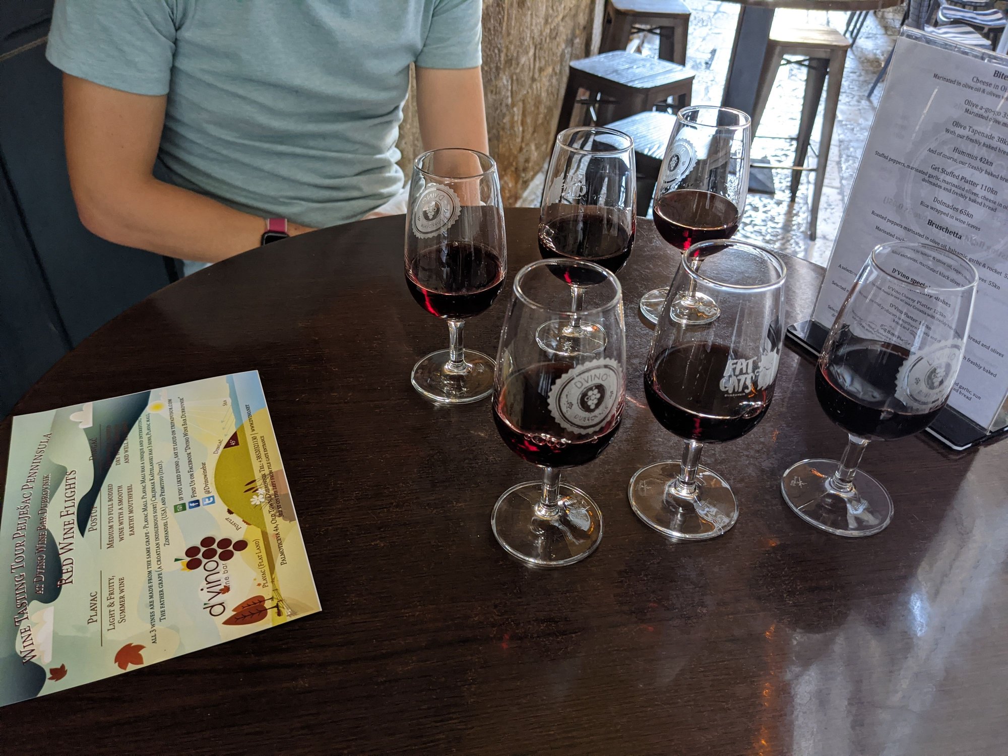 Not quite my typical setup, but three local reds today. We also had some nice bruschetta, but it wasn't in the photo.