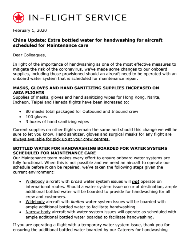 Since the CBC published an AC memo to cabin crew, I'll post it here. Mods are free to delete it.