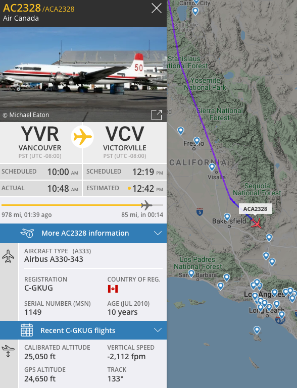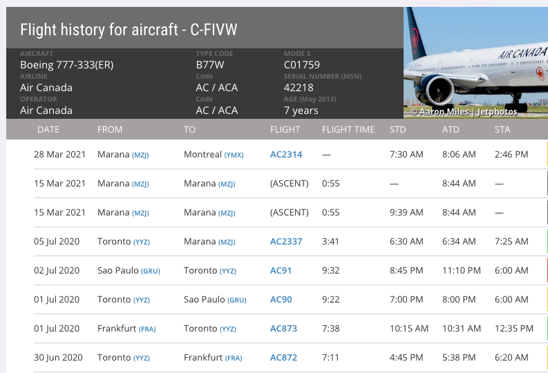 Tracking AC planes being parked due to COVID-19