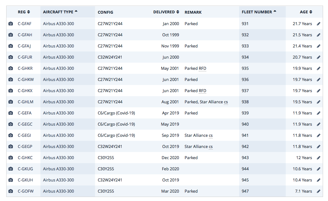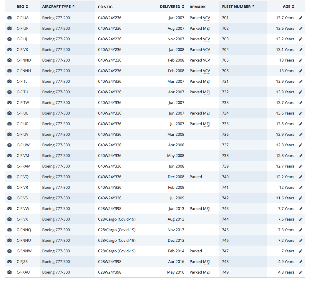 Is this info on Planespotters is current or almost current? I see that not all those that are parked have the locations listed, and C-FNNW is off at maintenance in SIN