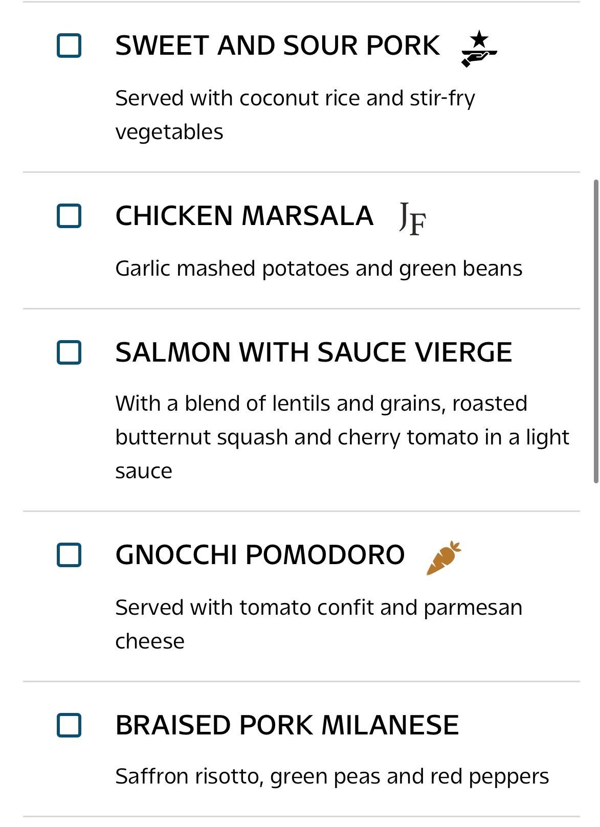 If you have questions about pre-ordering (on what flights it's available, when you can submit pre-orders, etc) or issues with the process (website not working, pre-order not being in the system when you take the flight, and so on), please visit the pre-ordering thread. This thread should be about the in-flight experience, both the food and beverage itself as well as service.