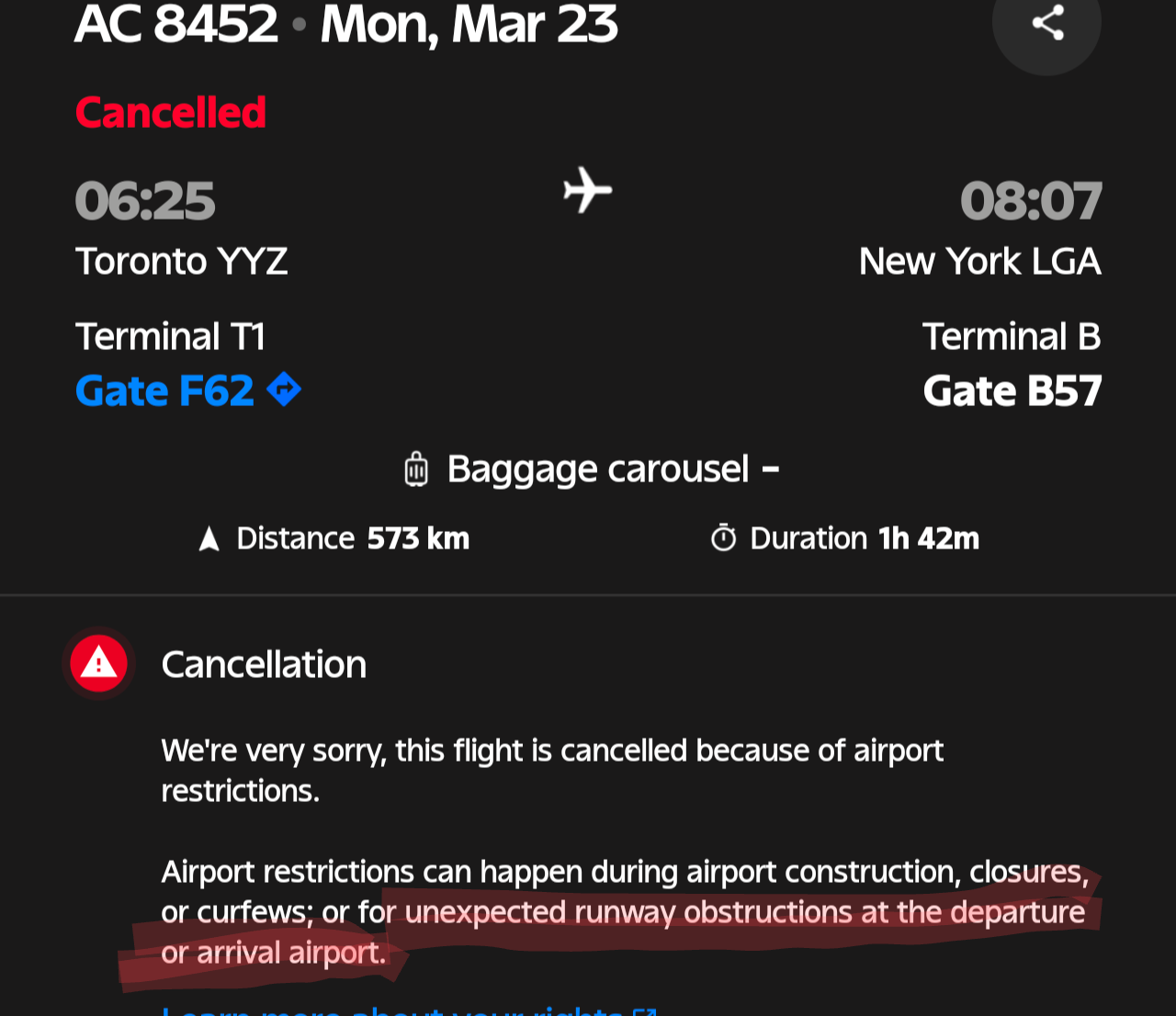 The flight status page for AC 8646 is equally interesting. But I guess they don't have it setup for the edge case of a flight never arriving at the gate.