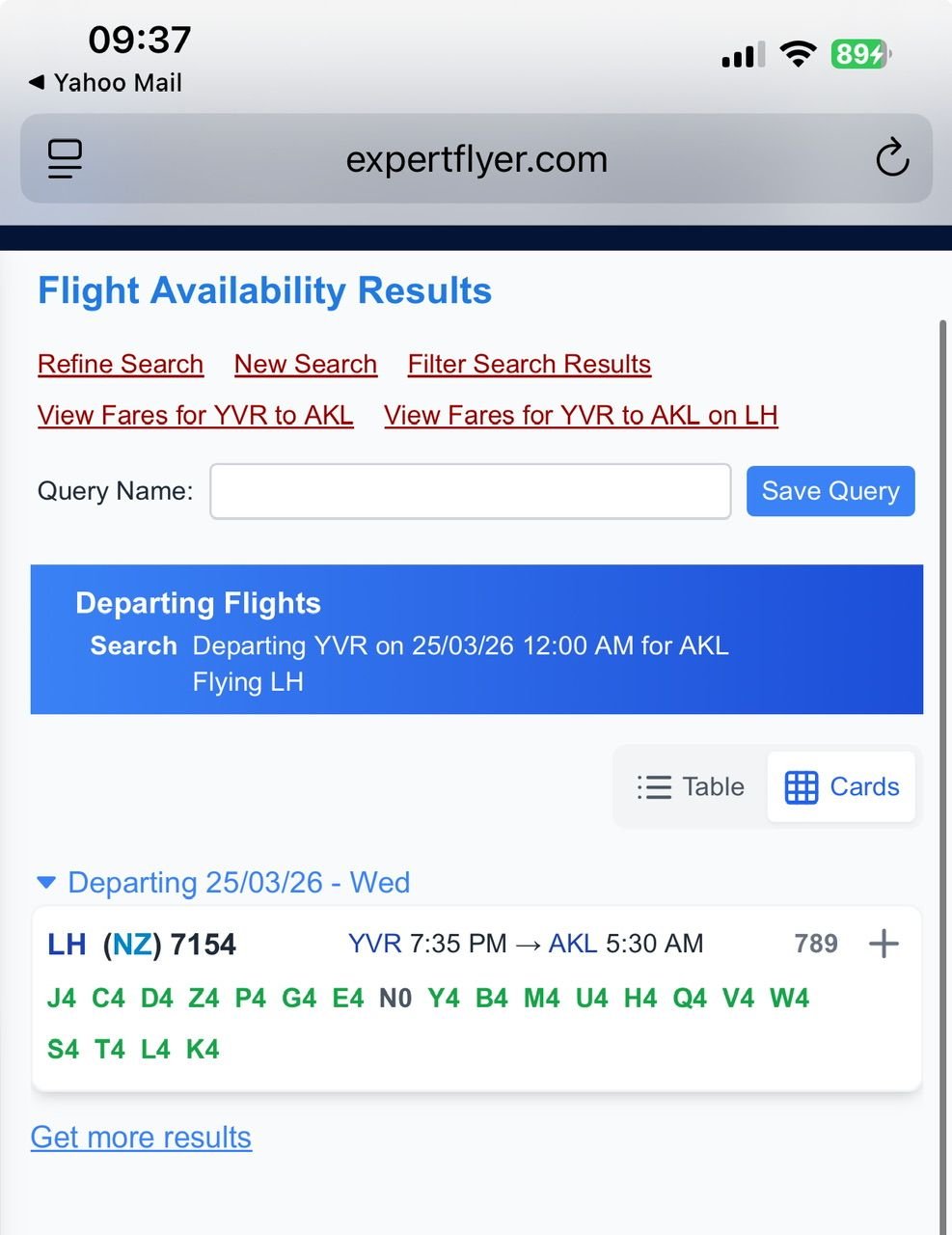 And answering a question higher up the thread - was I using LH or NZ as the search option in the airpoints calculator?