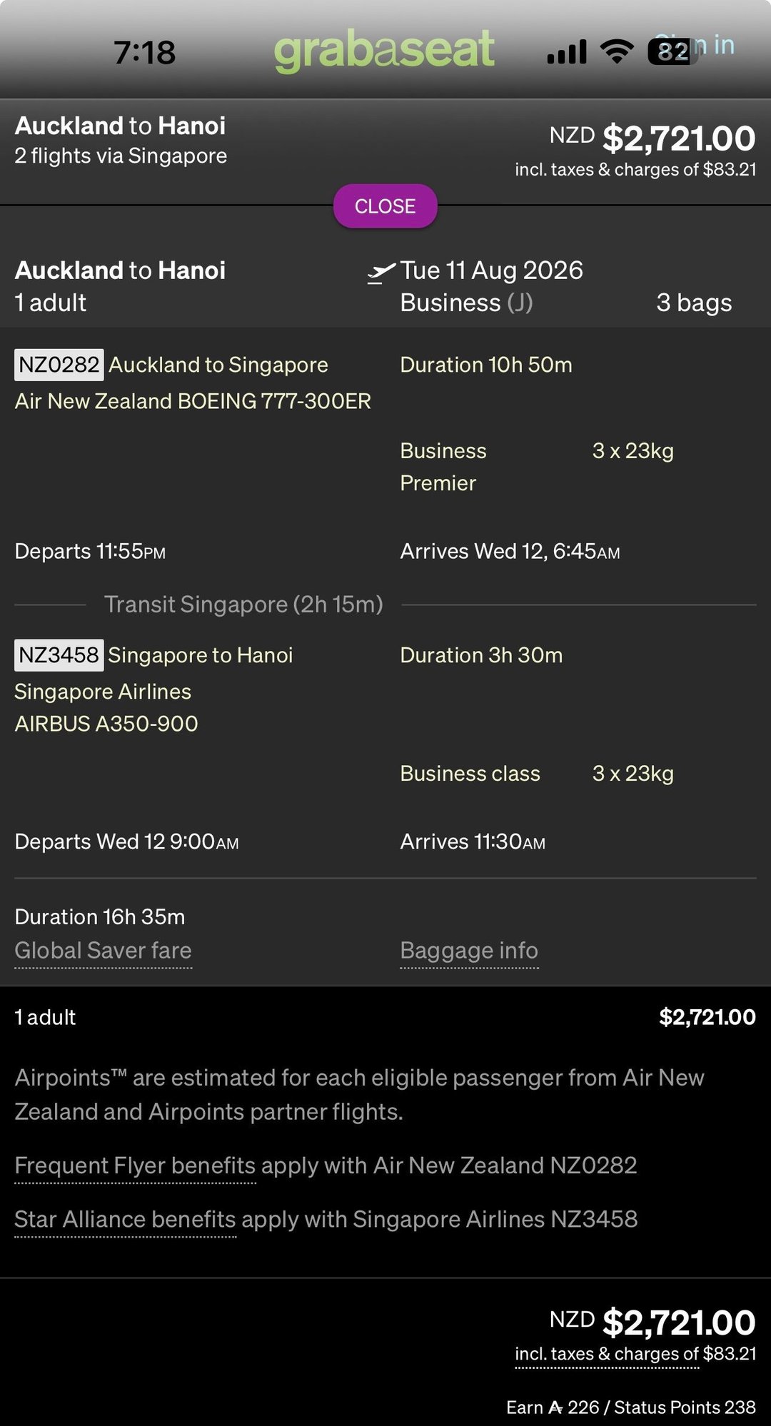 Or when I booked AKL-SIN-HAN last week, it was $400 cheaper than just flying AKL-SIN on the same flight.