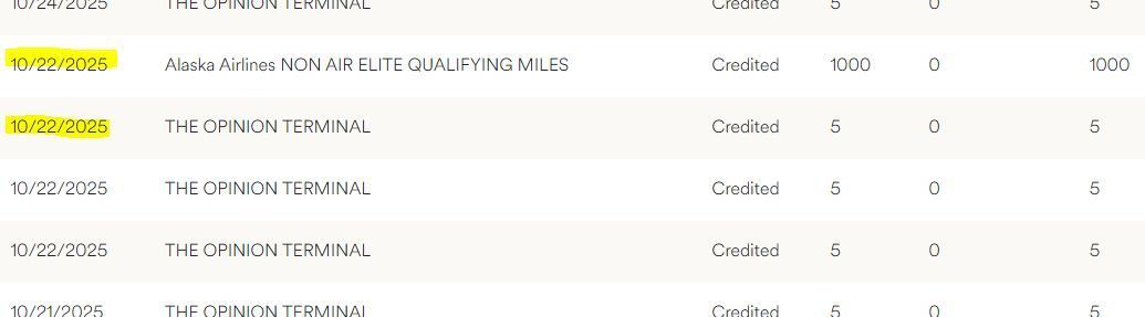 Other than air and HA credit card, my only source of points has been Opinions. The first few 3k chunks seemed to be converted to SPs after about a month. But then there was a delay from 08-15 to 09-30, and from 09-26 to not received as of today.Originally Posted by boatyflyer