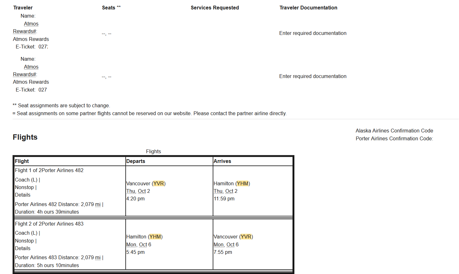 - PD 482/483 on 027 stock (YVR-YHM): Had to use old site to work around the "can't sell tickets between two foreign countries" error. After flight, mileage posted incorrectly, had to call and wait over an hour to get it corrected.