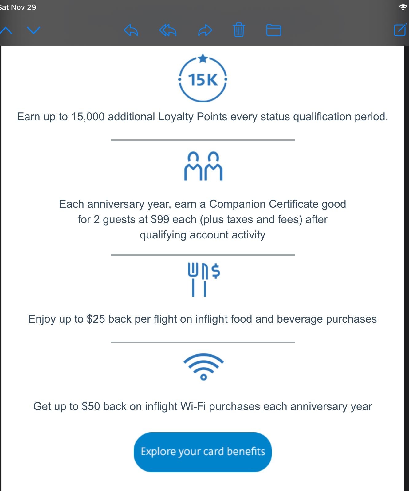 Companion Certificate: $20k in anniversary year spend required, issued about 45 days after you annual fee hits. Red gets one companion, Silver can have two. $99+tax for companions, round-trip 48 contiguous US States only unless you live in Alaska or Hawaii, in which case you may fly from your home state to the 48.