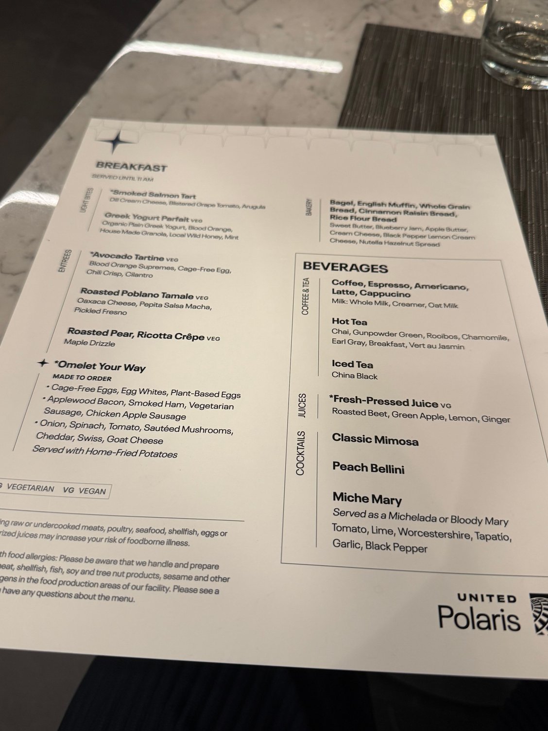 Polaris is indeed superior to the *A lounge for food and drinks, and I recommend it for anyone flying in J with 2.5+ hours to kill. However, the 20 minute walk is now closer to 40 minutes due to the closure of T5, which requires a slow shuttle bus between T4 and T6. For this reason, I highly advise walking (or taking a landside shuttle bus) from TBIT to T7 after checking in and dropping bags at TBIT. You will still need to make the 40 minute trek back to TBIT, but it will only take 15-20 minutes to get to T7 landside (outside on the sidewalk).