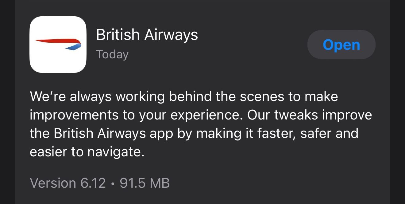There is a new update available to iOS users. V6.12 I also read there’s a brand new AA app as part of their transformation plan. I wonder if BA are following that and plan to release their much talked about app soon as well. It’s been a while since it was announced a new app is on the way! |