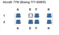 Outbound, we're flying in WTP and the aircraft is listed as 77W in MMB. It has 5 rows in 2-4-2 config; rows 30-34. We've currently selected 32H&K.