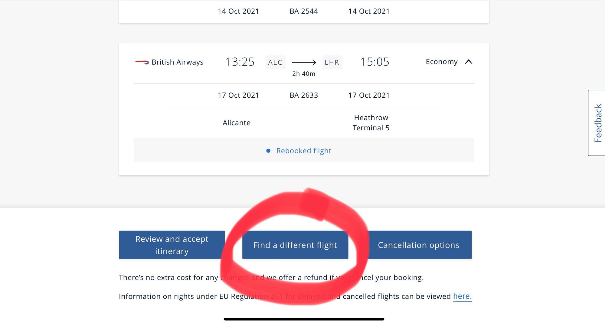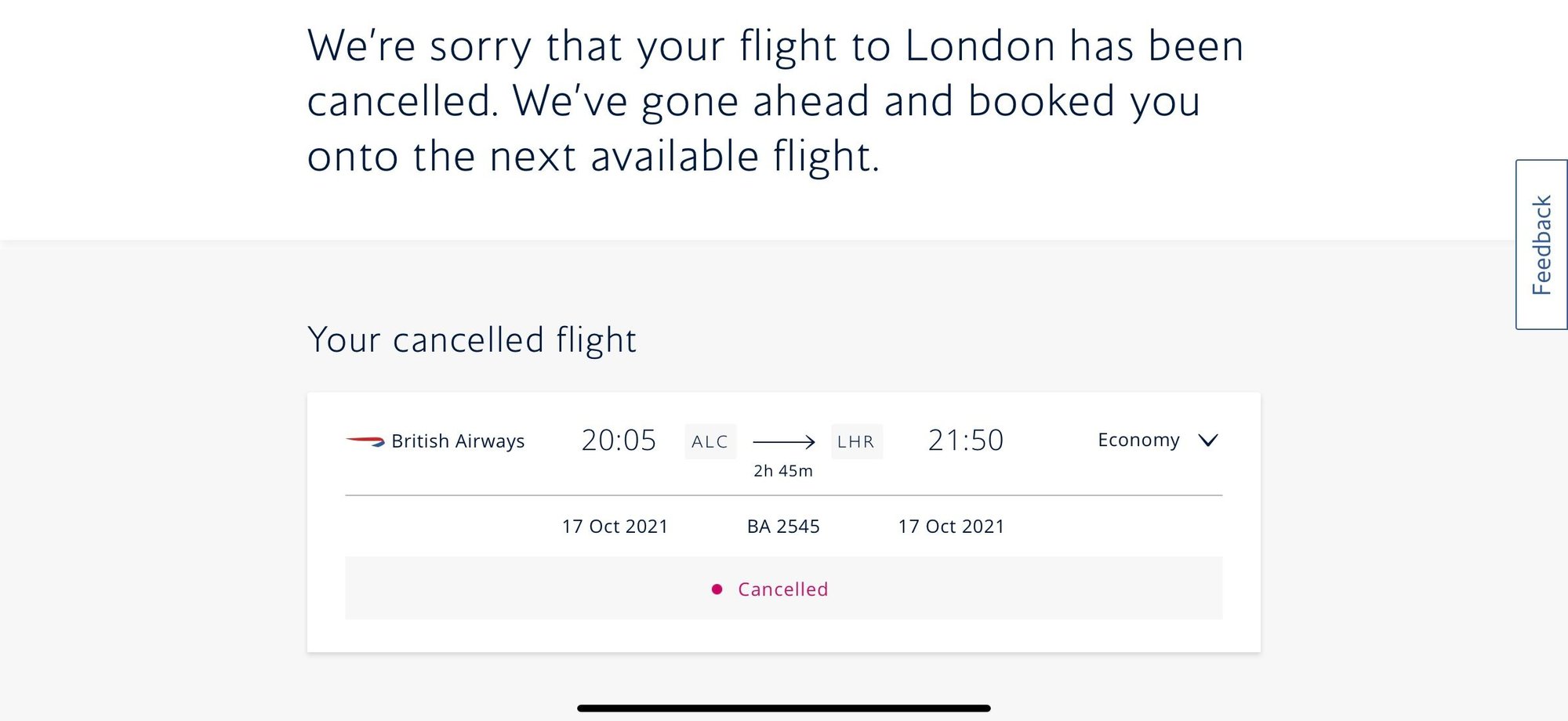 Reward flight canx by BA