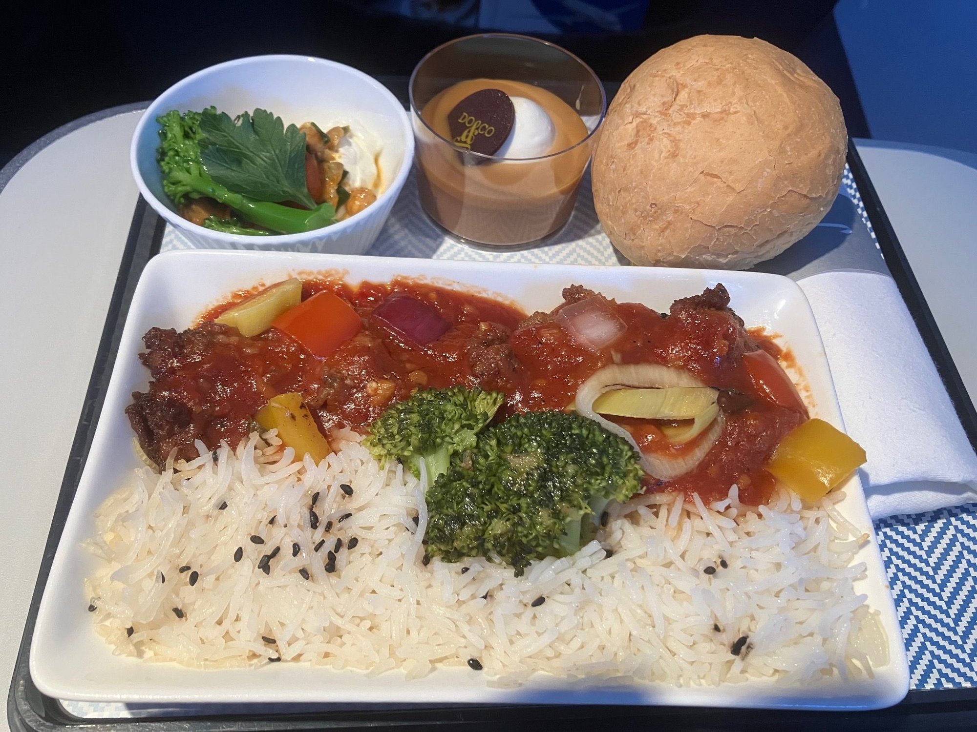 Other choices were a cold roast beef salad, which looked pretty good, and some sort of cheese pasta, which I didn't see. Crew was efficient and apologetic about the food.