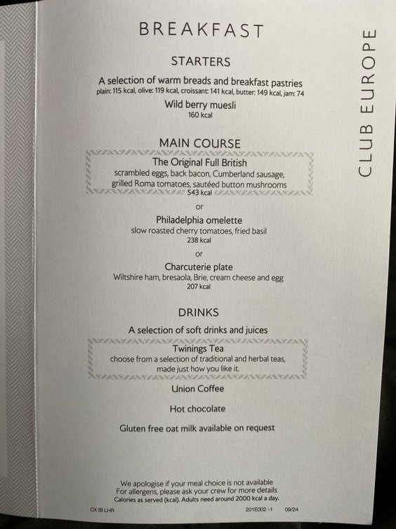 Sister thread - Club Europe catering | opinions and general discussion