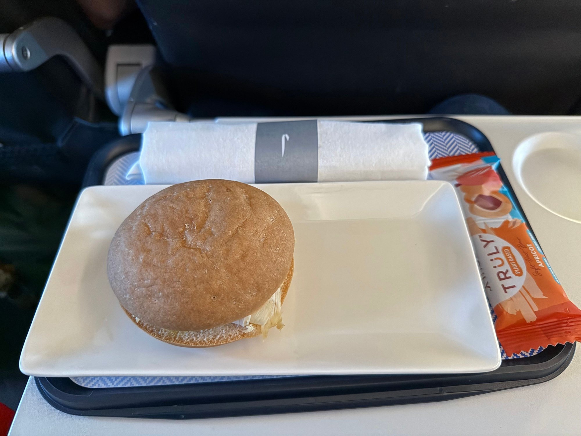 Gluten Free GFML breakfast on the early flight from Jersey to Heathrow. Hot chicken and tomato roll, which is kind of ironic to serve me instead of bacon at 7am considering brunchgate!