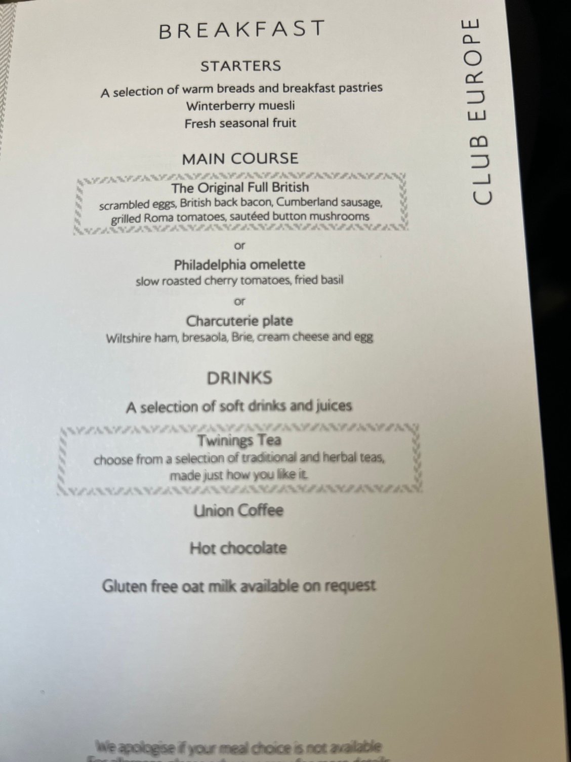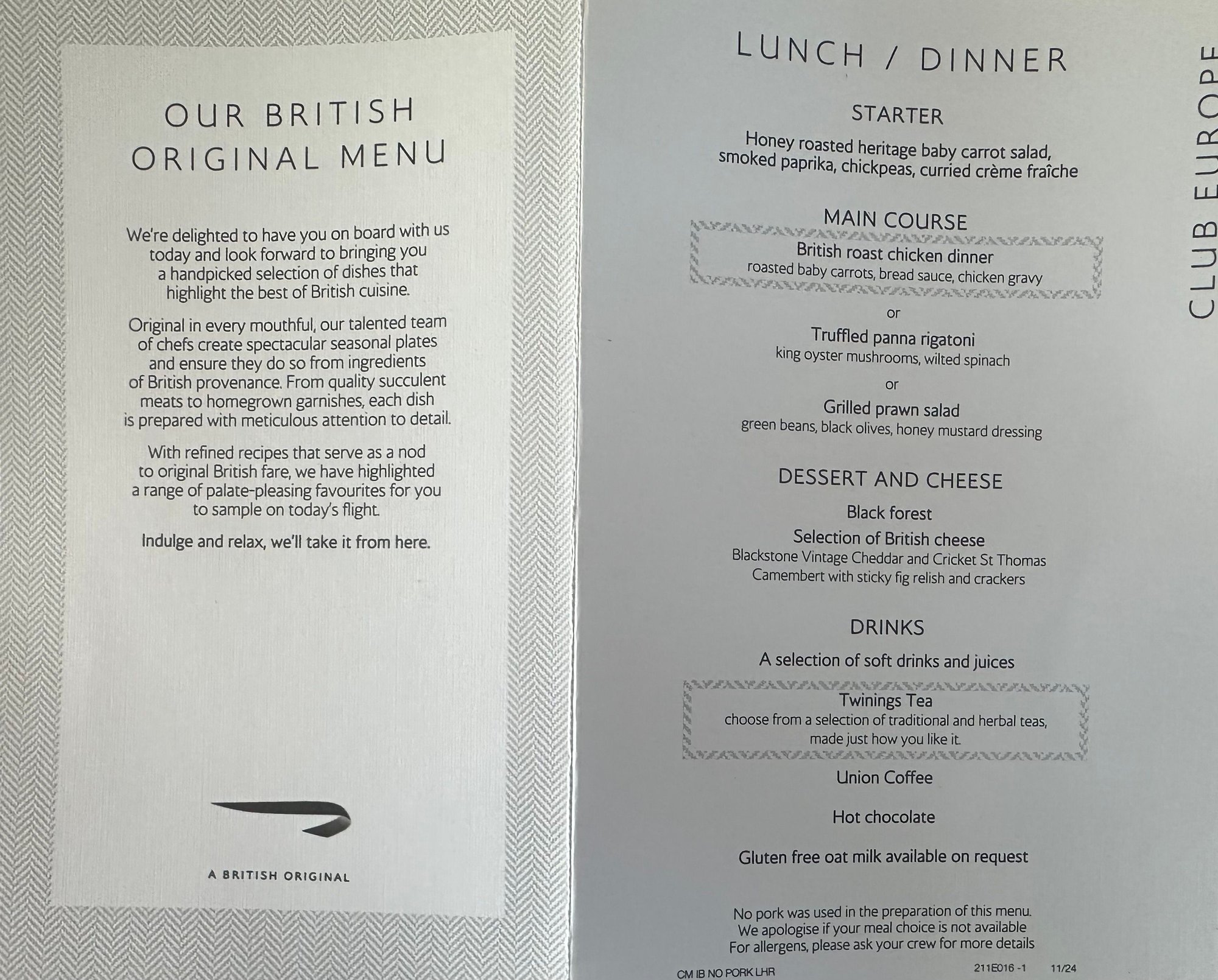 Club Europe catering | menus, reviews and photos (Mar 2022 to Dec 2023)