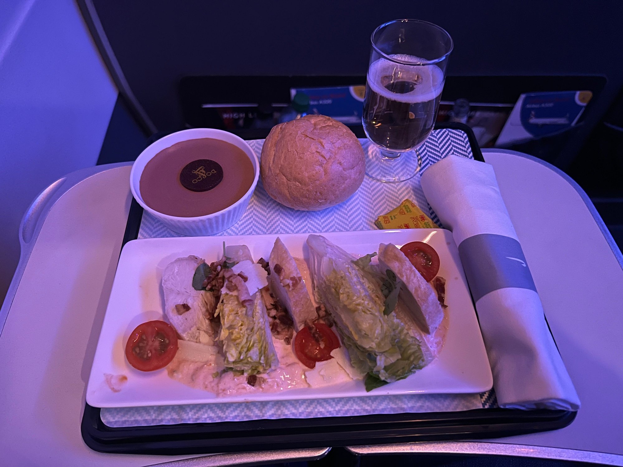 Band 1 dinner - described as “chicken salad”, but with lots of (what tasted like) bacon, which I feel should be mentioned. Of course no menus on non-UK band 1’s.
