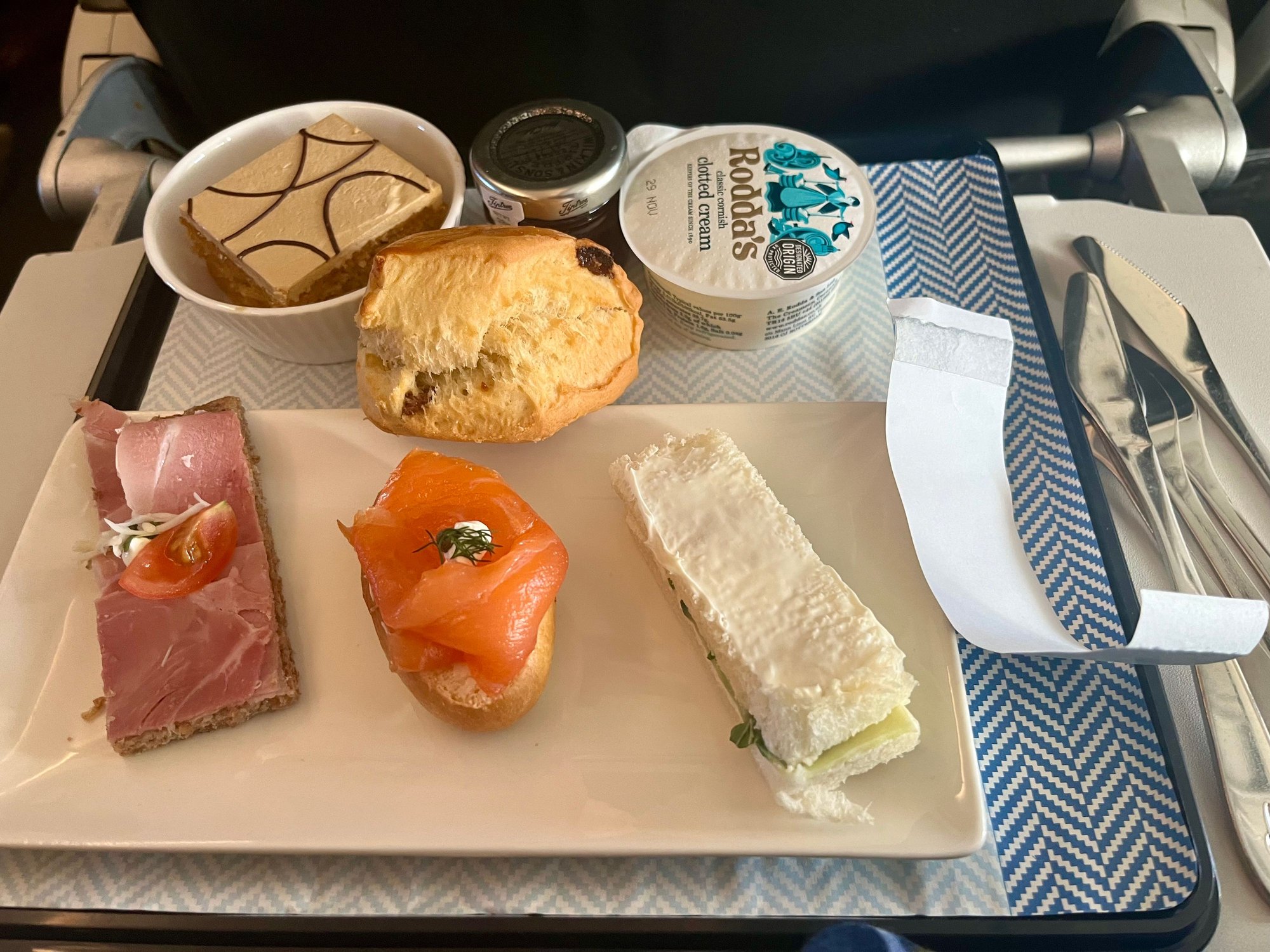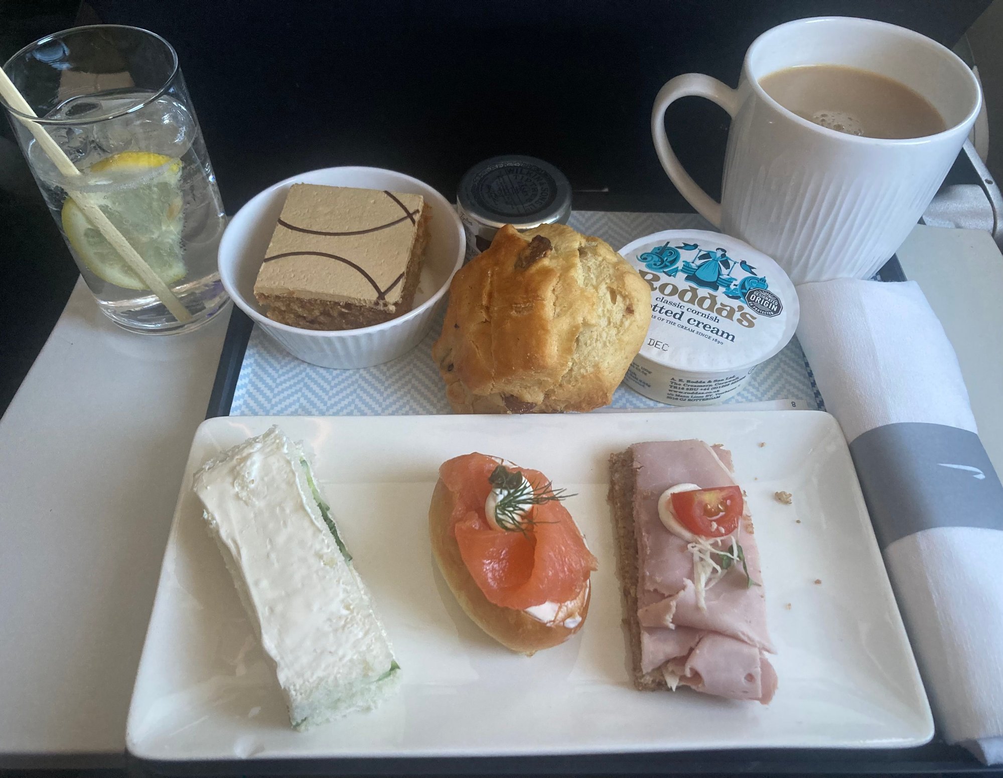 I really enjoyed this apart from the coffee cake, had a second scone too. A top up on the champagne was offered and the tea tasted really good. It was a busy Club cabin (back to row 8) and the crew were friendly and efficient but not as proactive as the outbound.