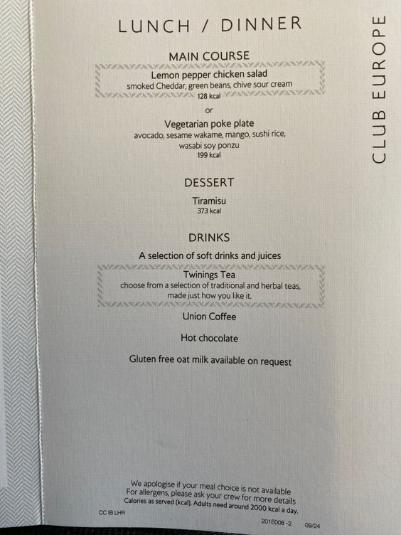Sister thread - Club Europe catering | opinions and general discussion