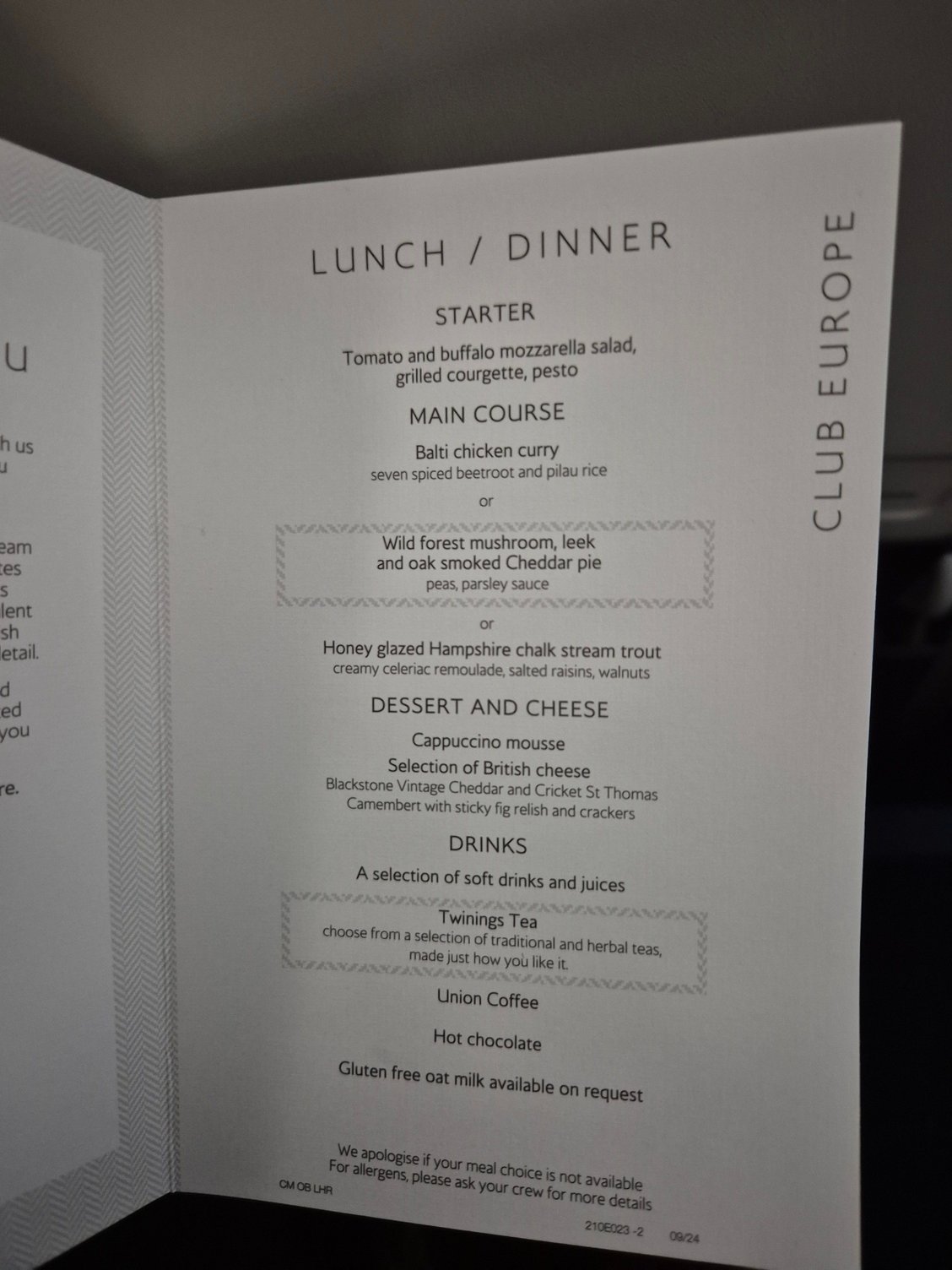 Club Europe catering | menus, reviews and photos (Mar 2022 to Dec 2023)