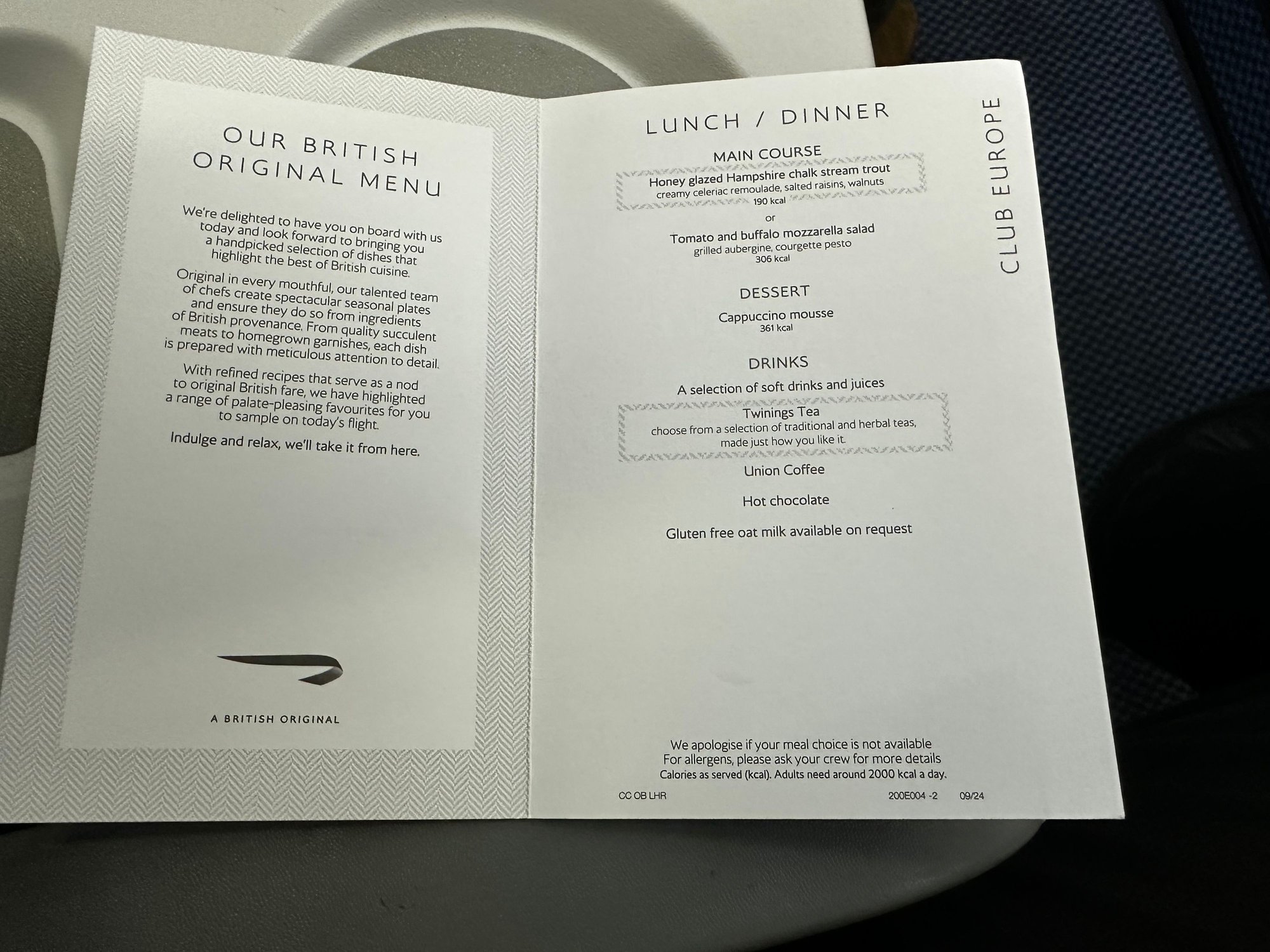 Menu to ABZ last Friday. I didnt actually take anything, but sipped champagne until landing. Good crew - they apologised for serving afternoon tea after a late take off meant it was after 5pm.
