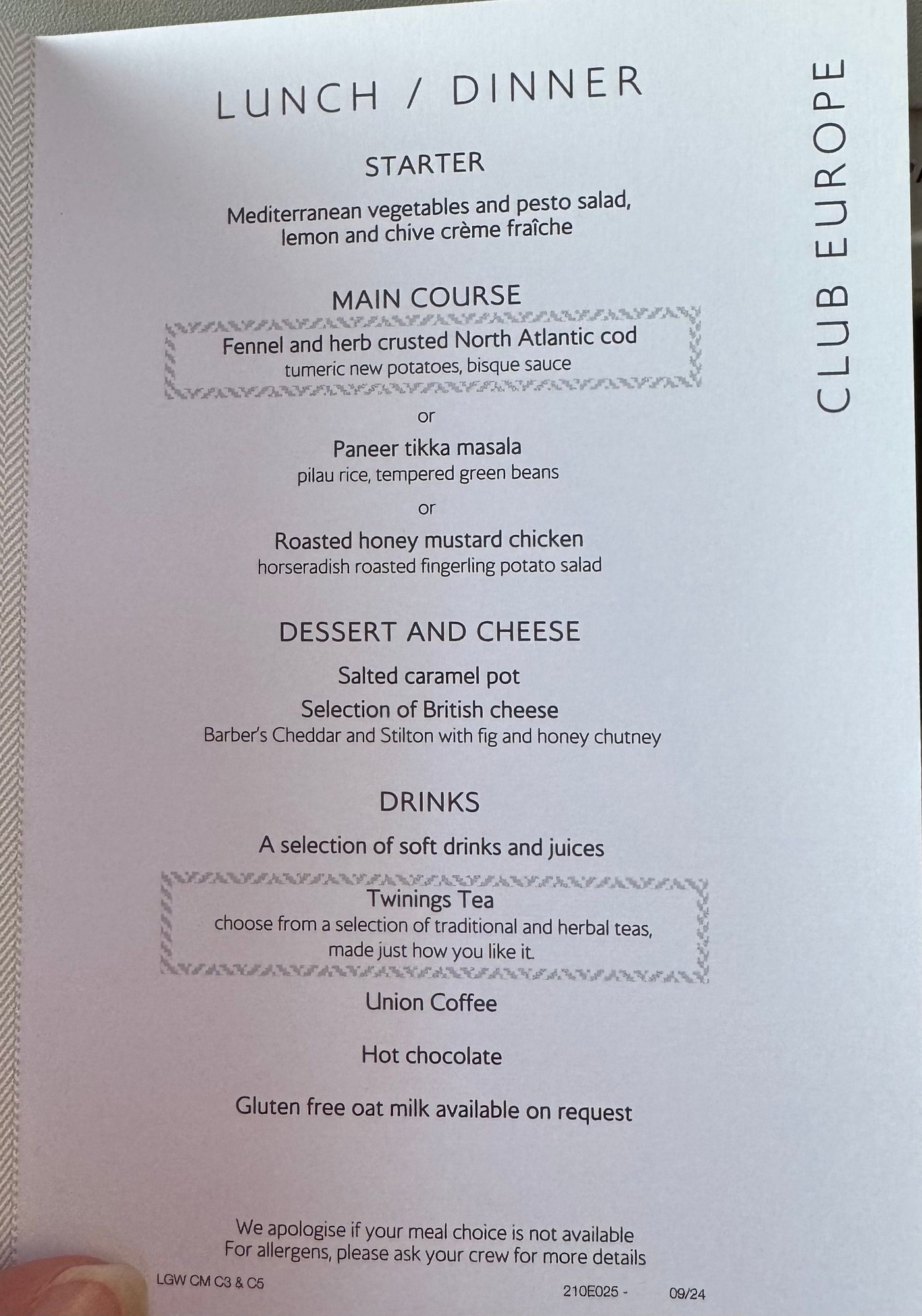 Club Europe catering | menus, reviews and photos (Mar 2022 to Dec 2023)