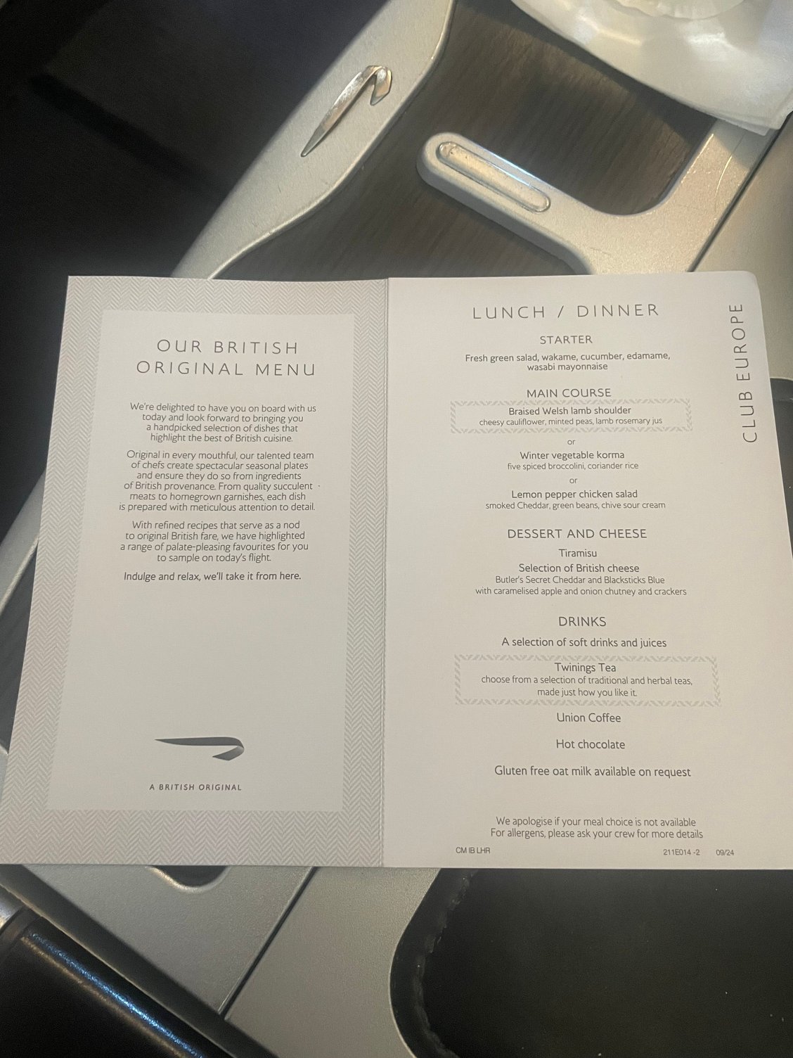 Sister thread - Club Europe catering | opinions and general discussion