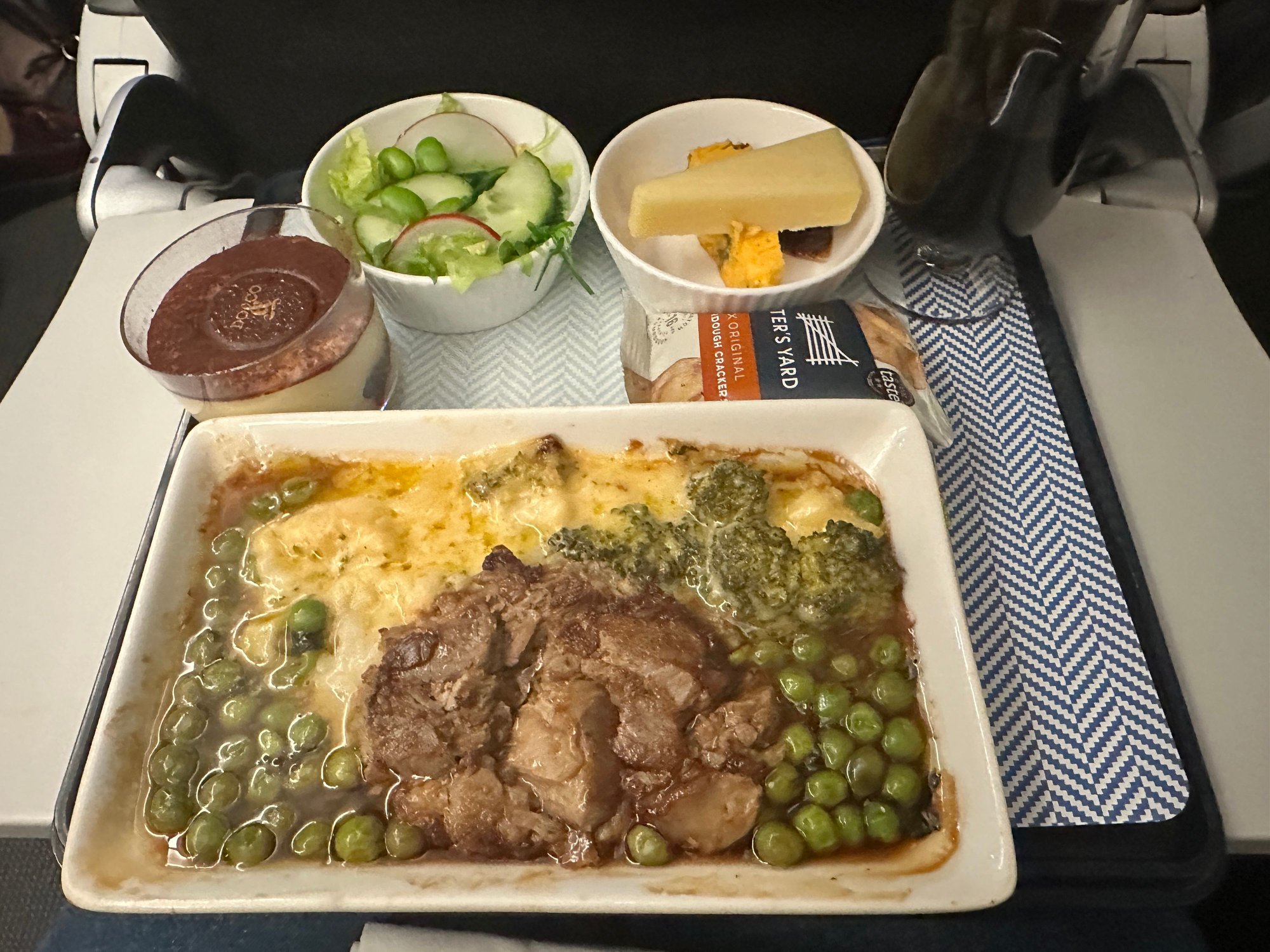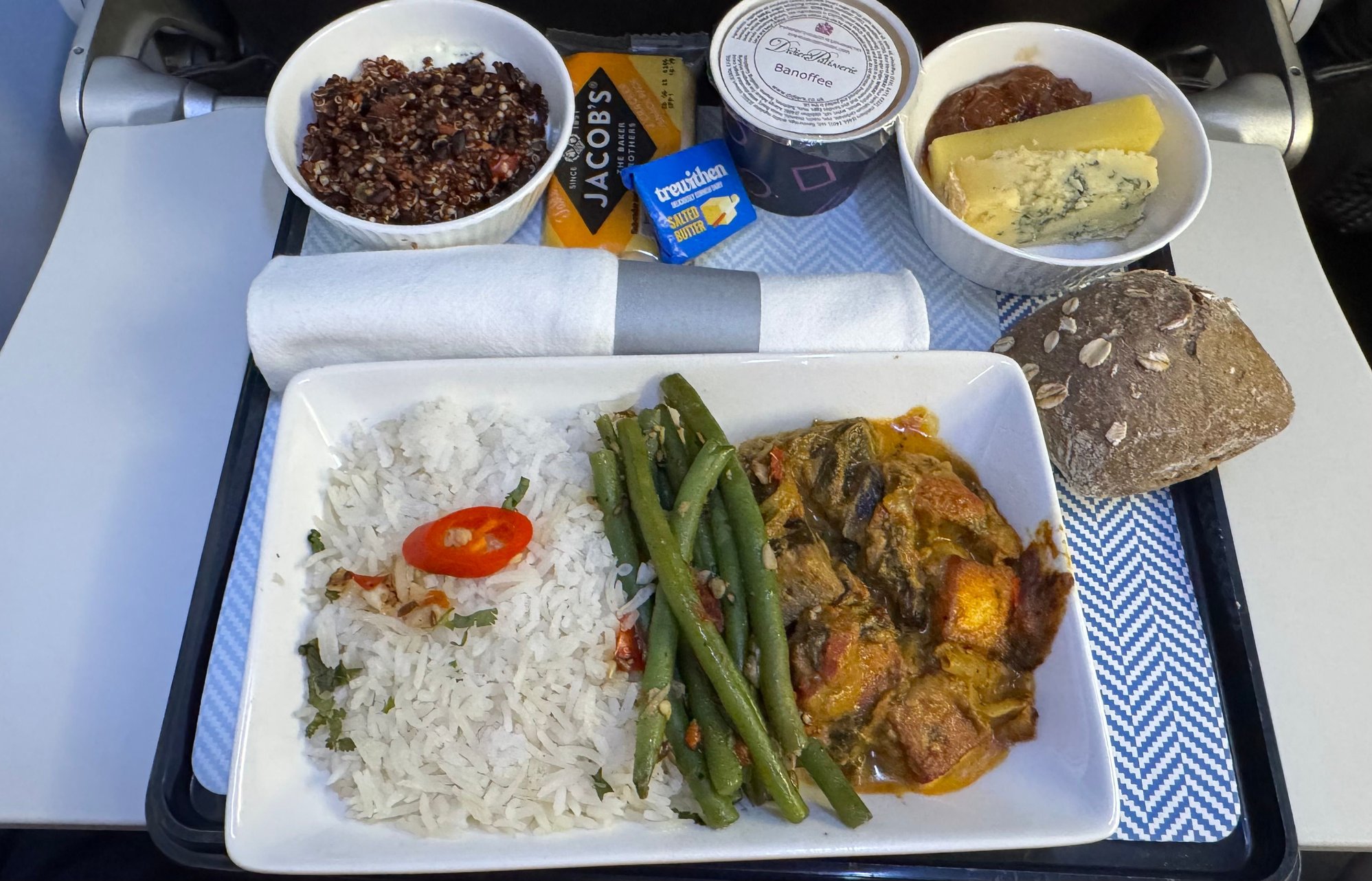 LPA-LGW had the same problem… white wine ran out after row 3 during the first bar run. I had the trout (already pictured upthread) which was great. Fairly indifferent crew, except for a young lad working down in economy who was great; the best service of the flight was during the 30m he was up front covering for breaks. Golden ticket incoming.