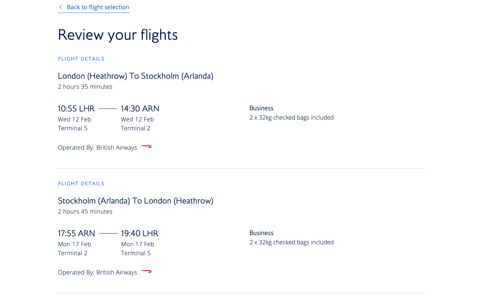 The old and new versions of the BA website produce different prices for exactly the same flights and dates flights LHR to ARN.