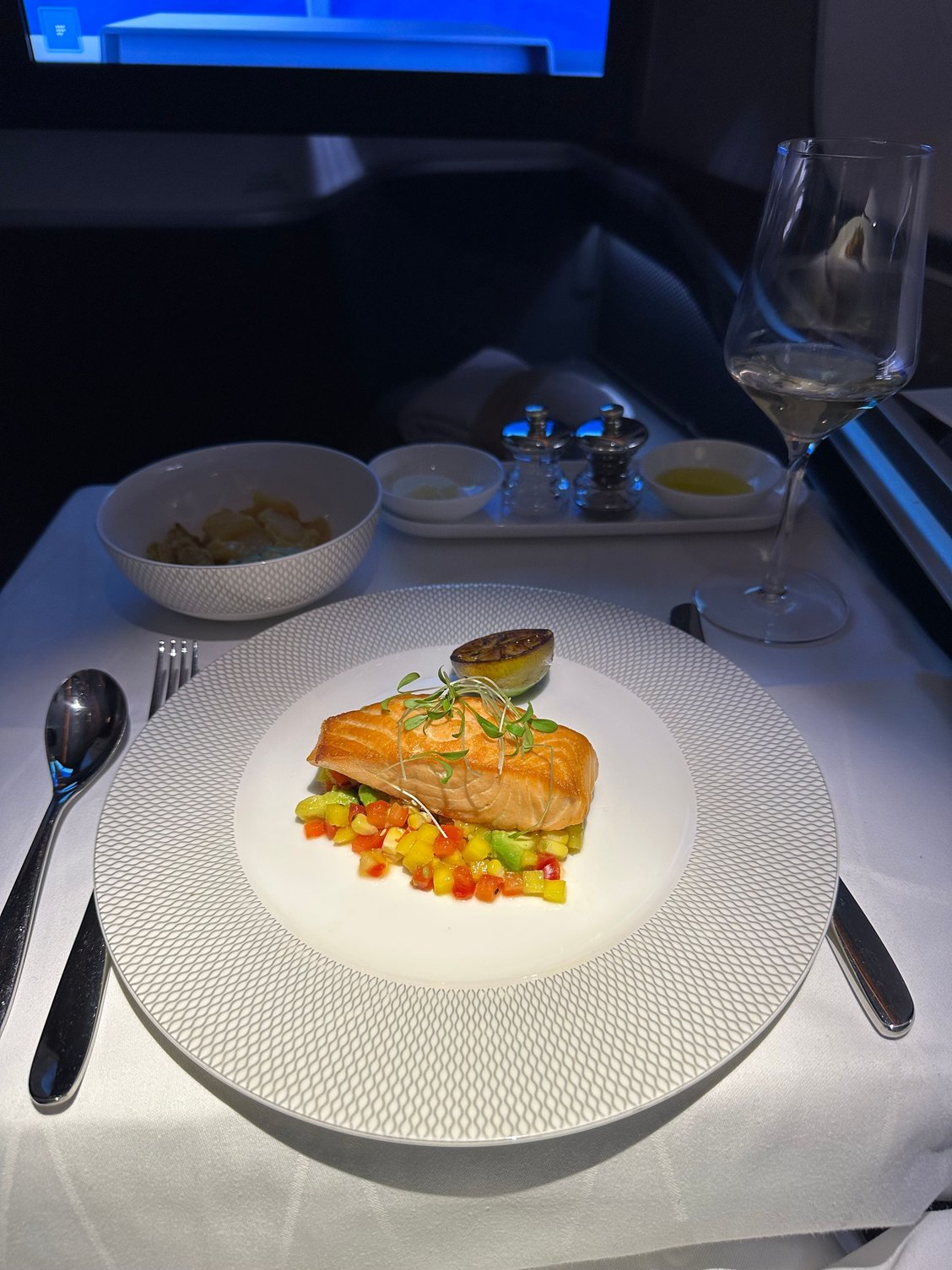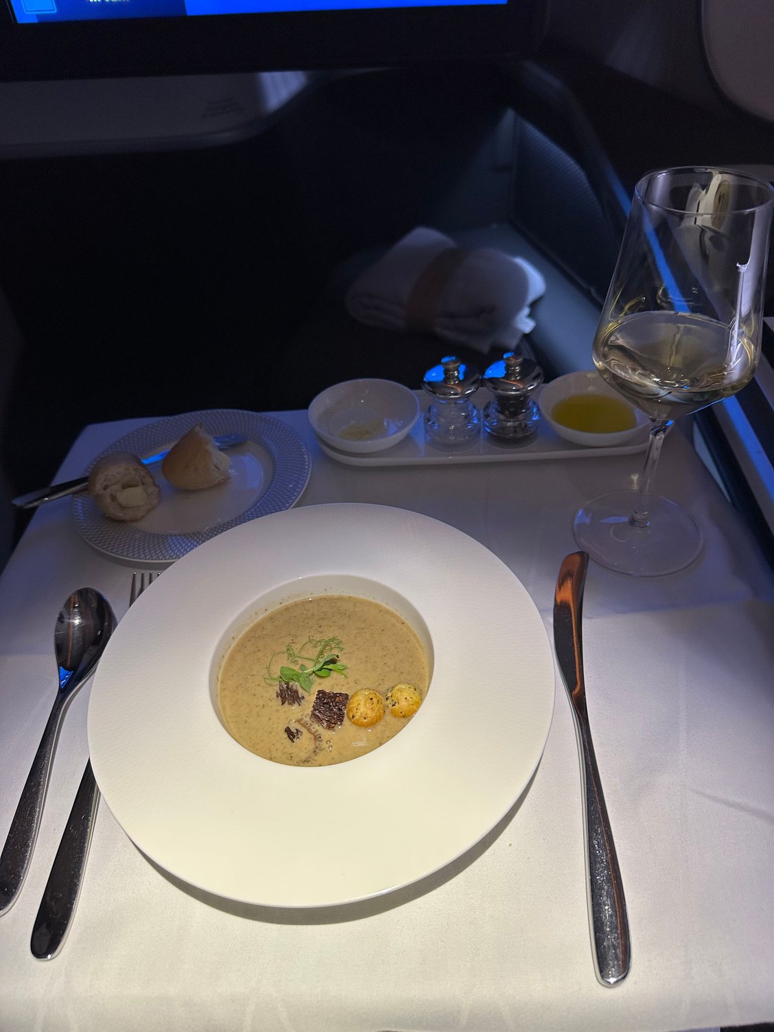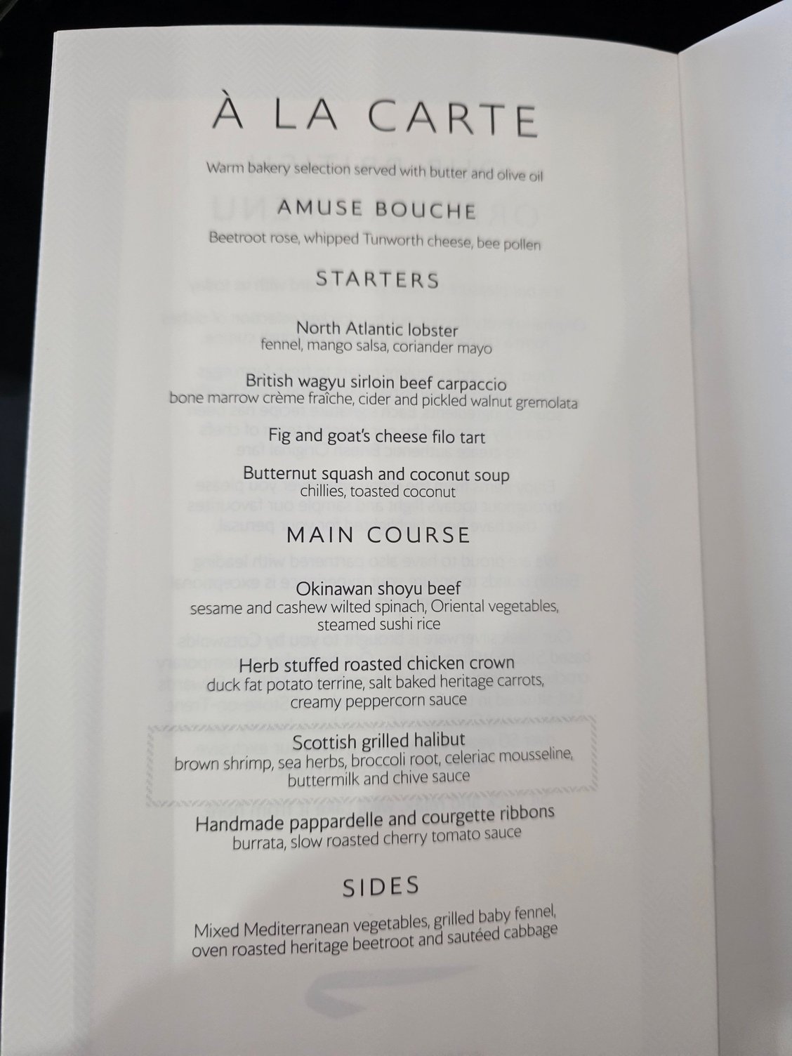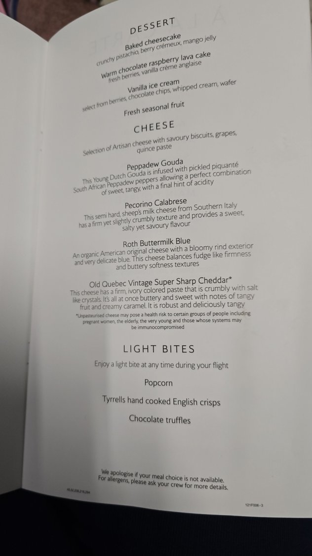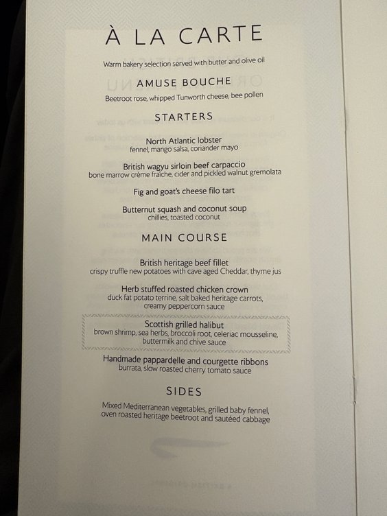 https://cimg9.ibsrv.net/gimg/www.fly...511a1d900.jpeg https://cimg0.ibsrv.net/gimg/www.fly...0c7002f57.jpeg https://cimg1.ibsrv.net/gimg/www.fly...dcfbb8bb1.jpeg https://cimg3.ibsrv.net/gimg/www.fly...e50a8aeab.jpeg https://cimg5.ibsrv.net/gimg/www.fly...15c45fd7b.jpeg BA 174 JFK-LHR I flew this earlier this week. The menu is as above in post #623 and also applies to BA 112,116,172 and as mentioned above 176. It was a nice flight and had an enthusiastic and friendly crew working in First. The welcome was good and the PDB and snacks both fine. The crew forgot about the Amuse bouche so I needed to remind them about that and had it after my soup. The soup was very nice and the amuse bouche better than my last one ex the USA. I enjoyed the salmon a lot and was able to fit in some ice cream before having a snooze. Given the limitations of a short overnight journey I enjoyed the flight. |