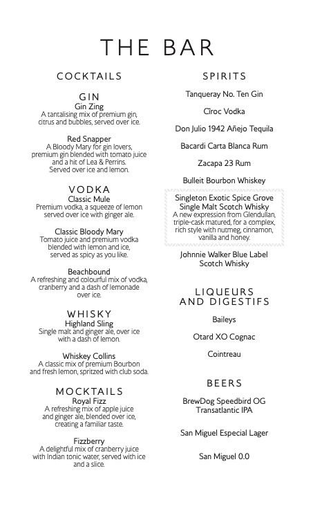 As ever with these menus, a thoroughly humiliating ‘cocktail’ list - spirit + mixer doth not a cocktail make.