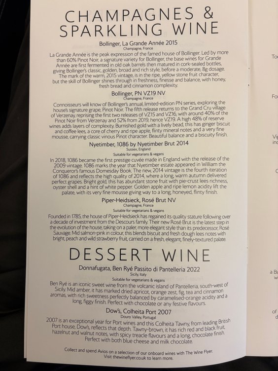 BA117 & BA176 menus for my upcoming flights in a couple of weeks. Bollinger has disappeared.