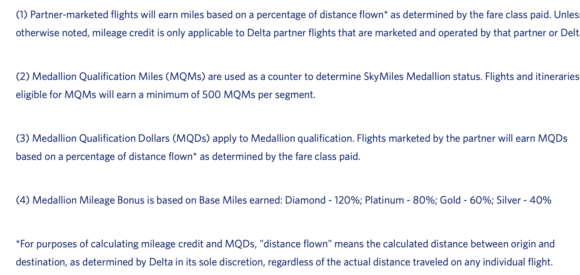The supervisor then gave me a lesson in the MQD crediting, reading off the below from the Partner earning page on Delta.com